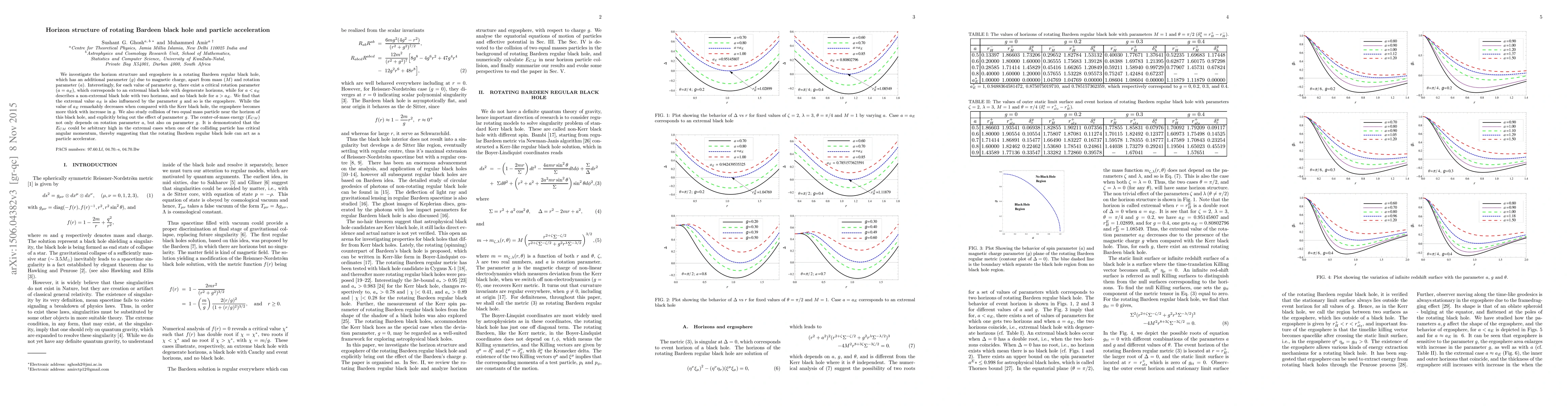 A rotating Bardeen black hole with an additional magnetic charge parameter shows unique horizon structure and ergosphere properties influenced by this parameter, enabling high particle acceleration capabilities.