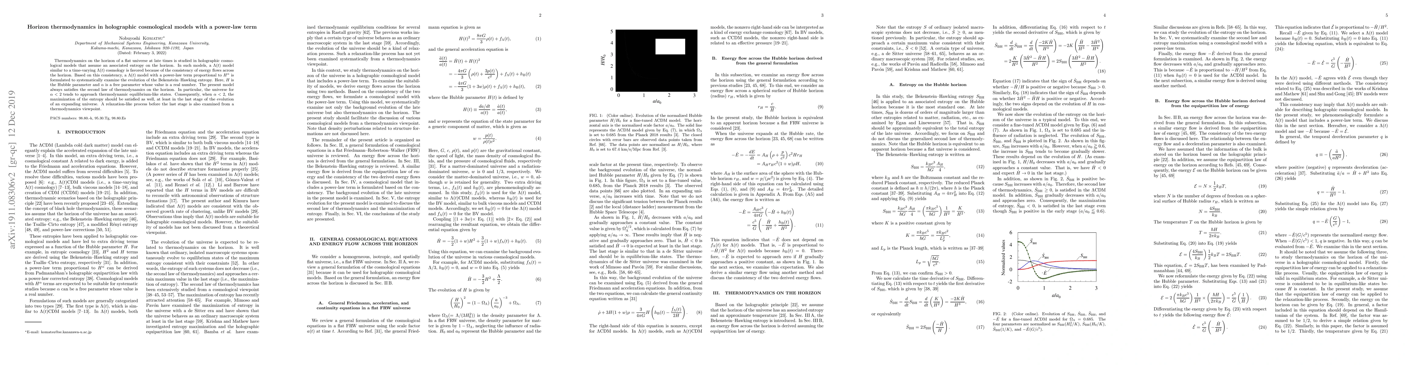 This paper explores thermodynamics on the horizon of a flat universe in holographic cosmological models with a time-varying $\Lambda(t)$ term, incorporating a power-law factor $H^{\alpha}$. It finds that for $\alpha < 2$, the universe approaches thermodynamic equilibrium, maximizing entropy in the final stages of its expansion.