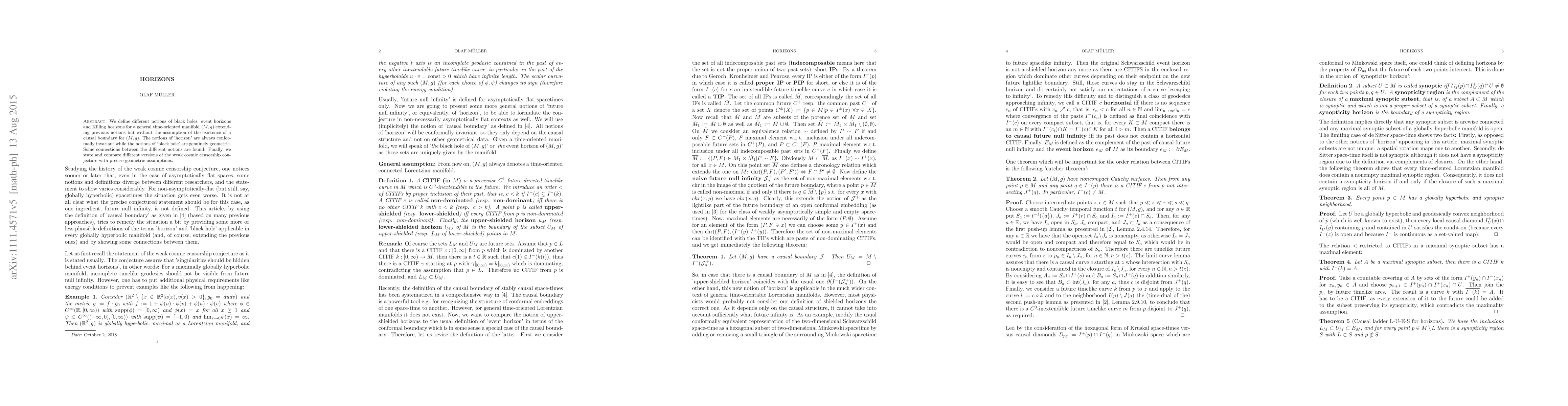 This paper extends the definitions of black holes, event horizons, and Killing horizons to general time-oriented manifolds without assuming asymptotic flatness. It establishes conformal invariance for horizon notions and genuine geometric nature for black hole definitions, while exploring connections between these concepts and their relevance to the weak cosmic censorship conjecture.
