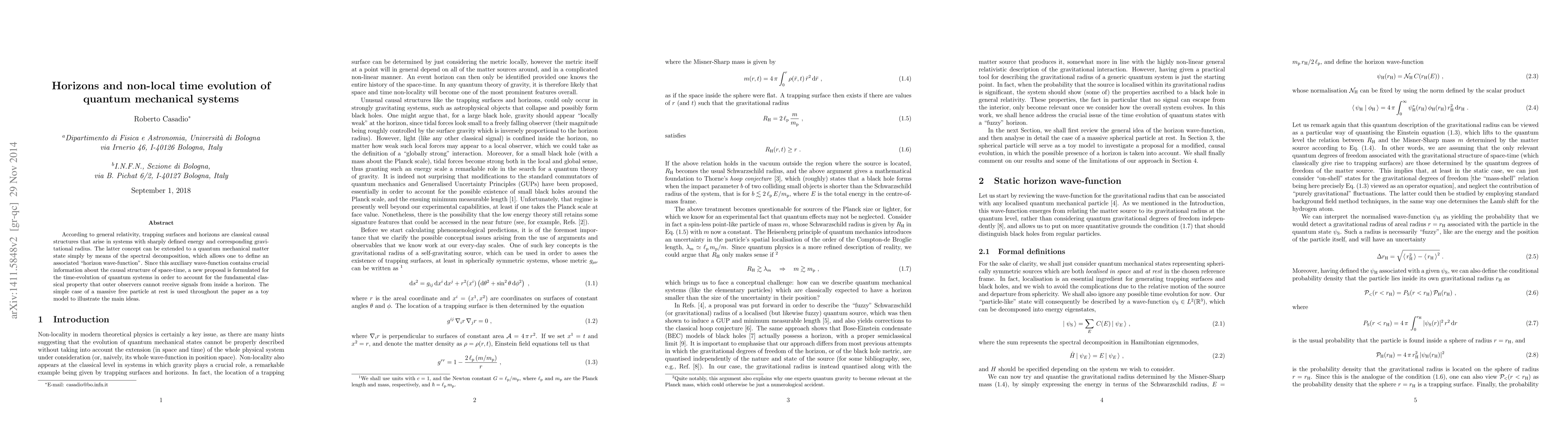 According to general relativity, trapping surfaces and horizons are classical causal structures that arise in systems with sharply defined energy and corresponding gravitational radius. The latter concept can be extended to a quantum mechanical state simply by means of the spectral decomposition, which allows one to define an associated "horizon wave-function". Since this auxiliary wave-function contains crucial information about the causal structure of space-time, a new proposal is formulated for the time-evolution of quantum states in order to account for the fundamental classical property that outer observers cannot receive signals from inside a horizon. The simple case of a single massive free particle at rest is used throughout the paper as a toy model to illustrate the main ideas.