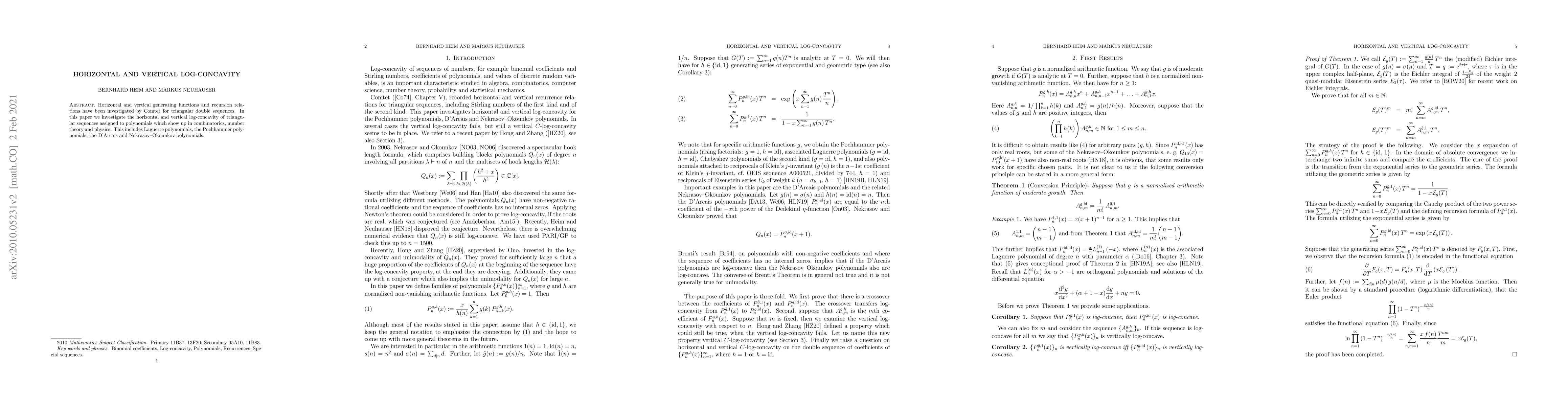 Horizontal and vertical generating functions and recursion relations have been investigated by Comtet for triangular double sequences. In this paper we investigate the horizontal and vertical log-concavity of triangular sequences assigned to polynomials which show up in combinatorics, number theory and physics. This includes Laguerre polynomials, the Pochhammer polynomials, the D'Arcais and Nekrasov--Okounkov polynomials.