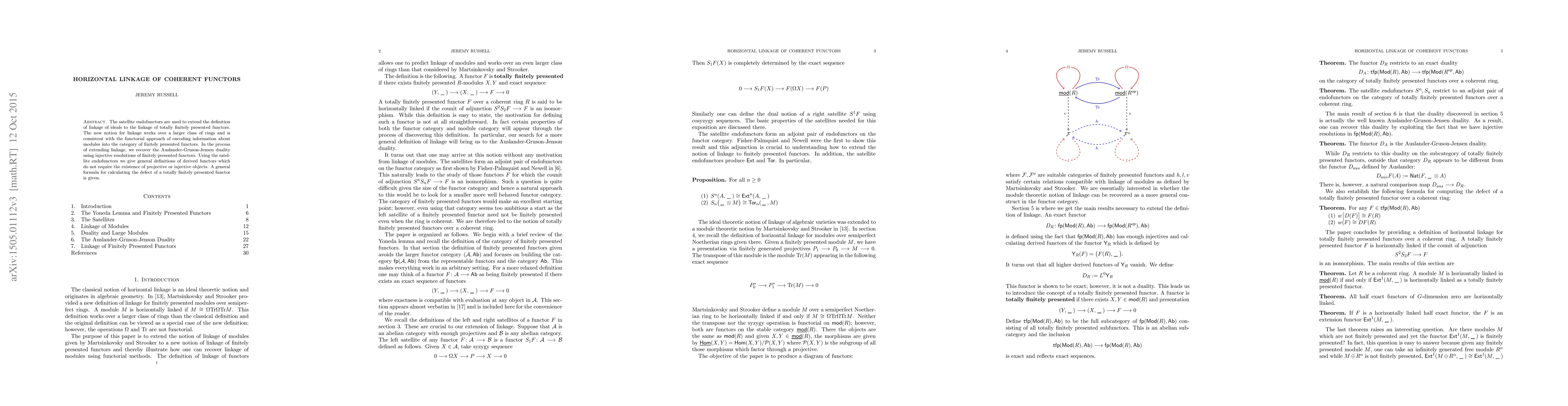 The satellite endofunctors are used to extend the definition of linkage of ideals to the linkage of totally finitely presented functors. The new notion for linkage works over a larger class of rings and is consistent with the functorial approach of encoding information about modules into the category of finitely presented functors. In the process of extending linkage, we recover the Auslander-Gruson-Jensen duality using injective resolutions of finitely presented functors. Using the satellite endofunctors we give general definitions of derived functors which do not require the existence of projective or injective objects. A general formula for calculating the defect of a totally finitely presented functor is given.