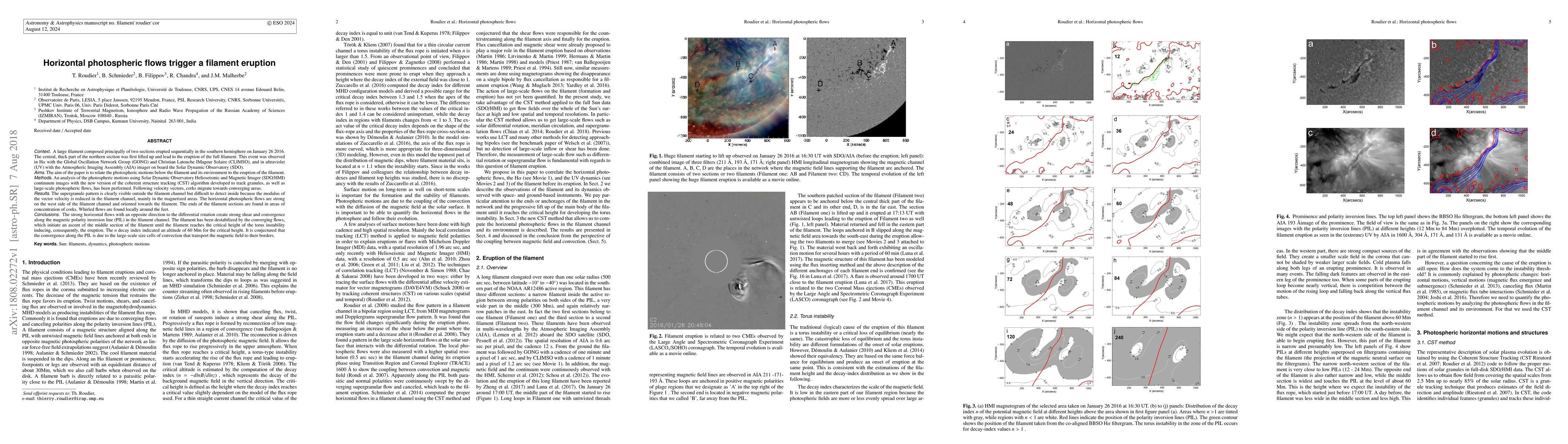 This paper investigates a filament eruption triggered by horizontal photospheric flows, showing that strong, converging flows along the magnetic polarity inversion line destabilize the filament, leading to its ascent and eventual eruption. The study uses SDO/HMI images and the CST algorithm to track these flows, revealing their role in initiating the filament's critical instability height at 60 Mm.