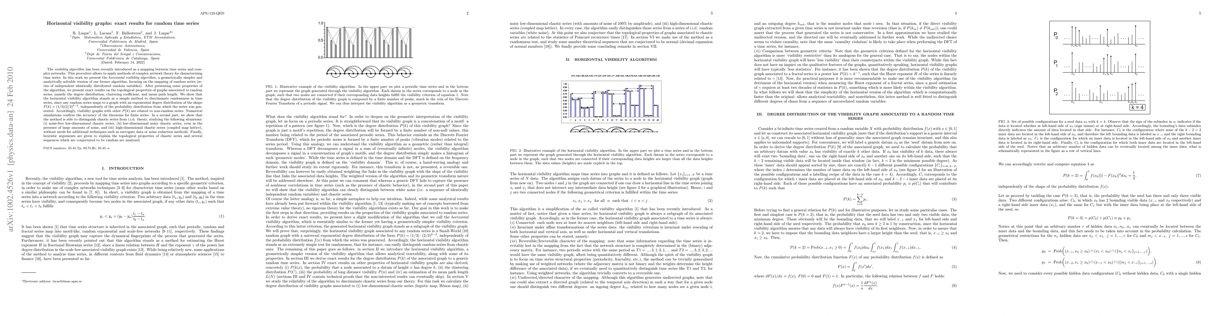 The paper introduces the horizontal visibility algorithm, a simplified version of a time series mapping method, and provides exact results for its topological properties when applied to random series. The algorithm can discriminate randomness, showing an exponential degree distribution, and is effective in distinguishing chaotic series from random time series without additional noise reduction techniques.