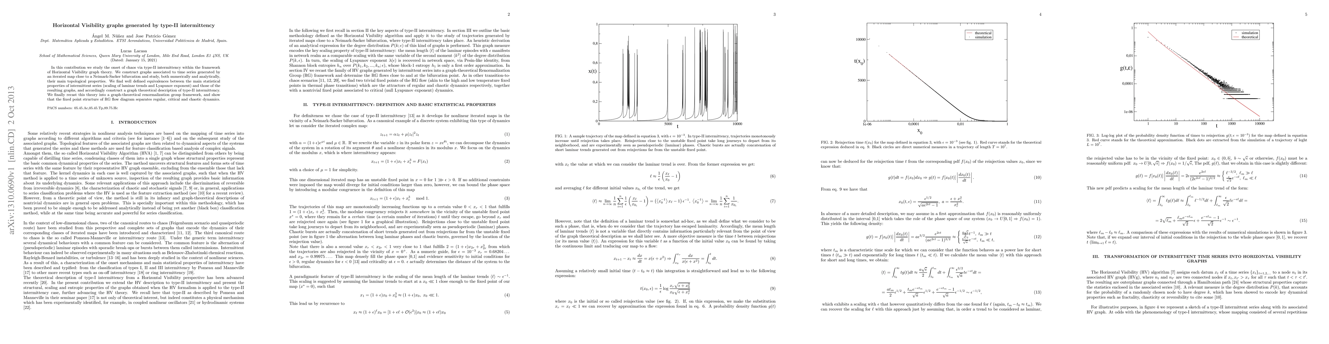 This paper explores the onset of chaos through type-II intermittency using Horizontal Visibility graphs, finding equivalences between statistical properties of intermittent time series and their graphs. It develops a graph-theoretical renormalization group framework to distinguish between regular, critical, and chaotic dynamics.