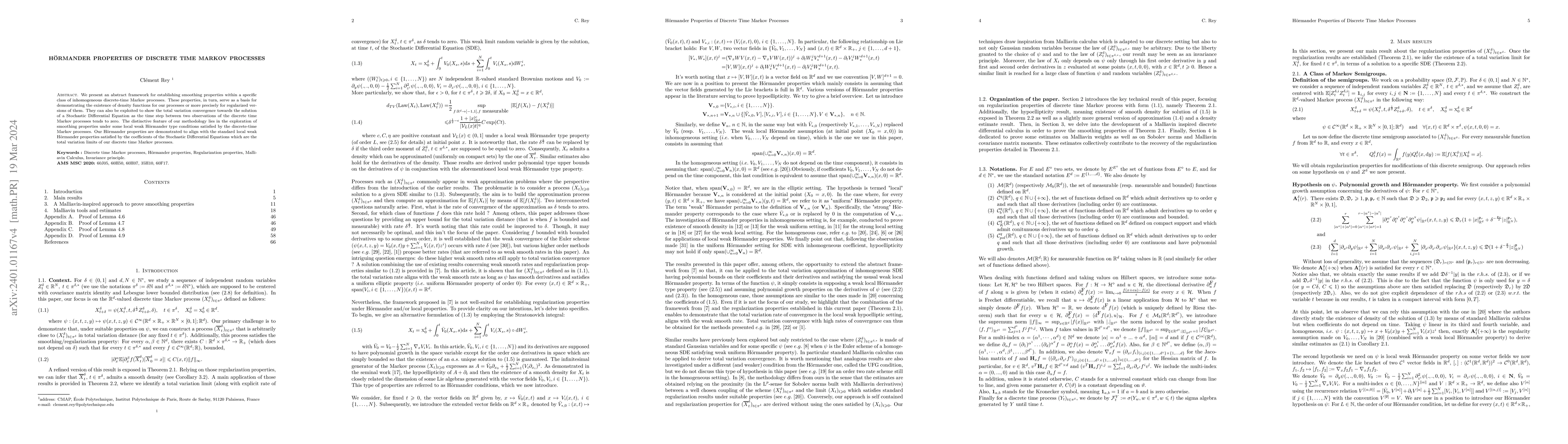 This paper establishes an abstract framework to demonstrate smoothing properties in a class of inhomogeneous discrete-time Markov processes, showing their convergence to Stochastic Differential Equations and existence of density functions under local weak Hörmander conditions. The methodology aligns these properties with the standard conditions of the limiting Stochastic Differential Equations.