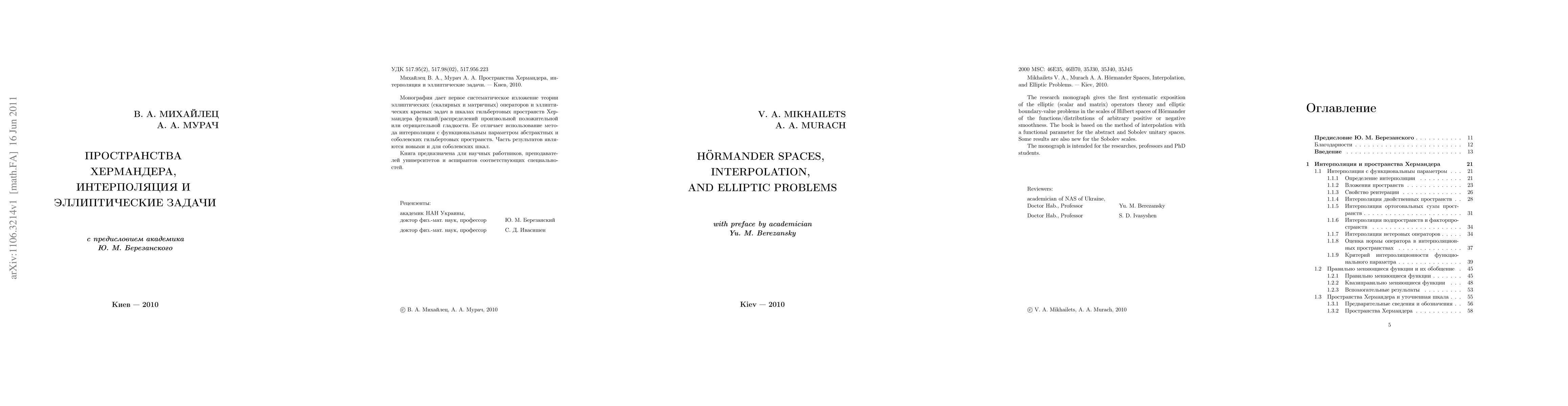 This monograph systematically explores elliptic operators and boundary-value problems within Hörmander spaces, employing interpolation methods for abstract and Sobolev unitary spaces. It introduces new results for Sobolev scales and targets researchers, professors, and PhD students in the field.