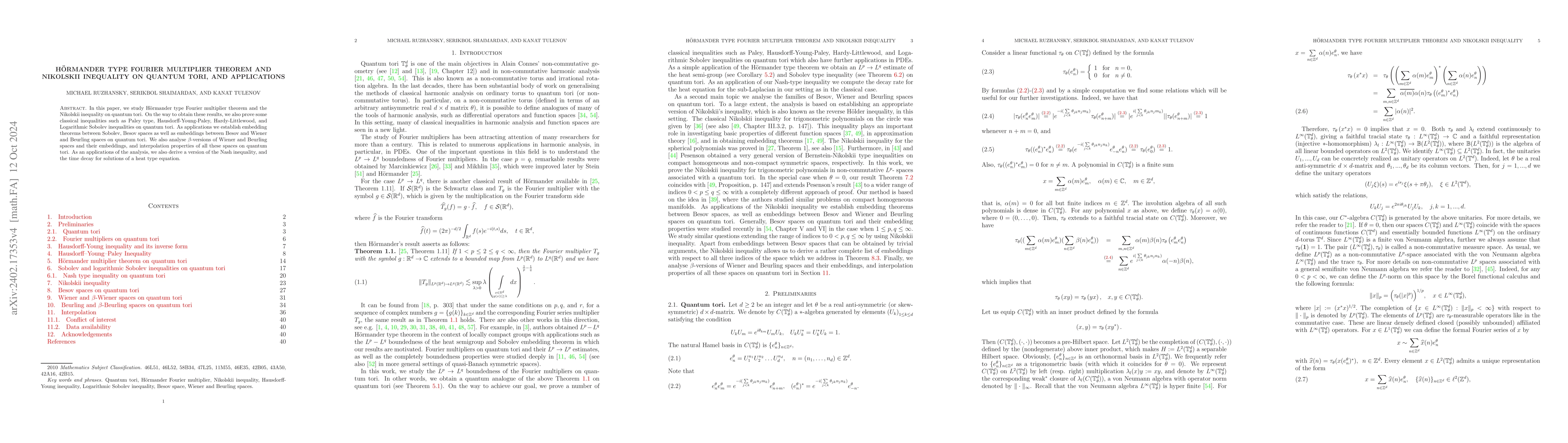 The paper introduces a novel approach to Fourier analysis on quantum tori, extending classical results to this setting and proving new inequalities and embedding theorems.