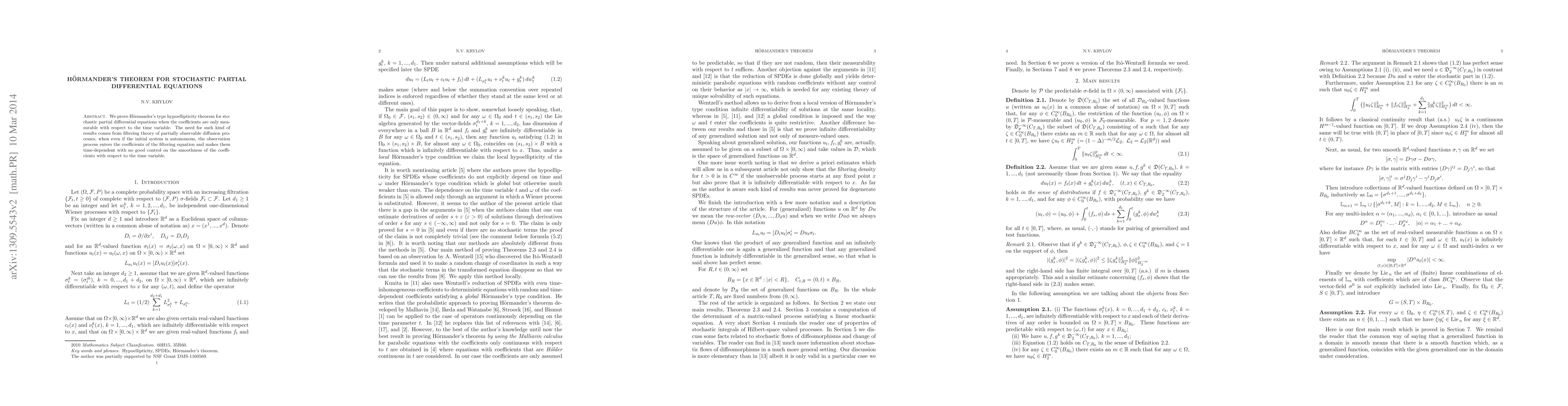 Summary: This paper proves a hypoellipticity theorem for stochastic partial differential equations with time-dependent, measurable coefficients, addressing challenges in filtering theory for partially observable diffusion processes where observation processes introduce time-dependent coefficients lacking smoothness.