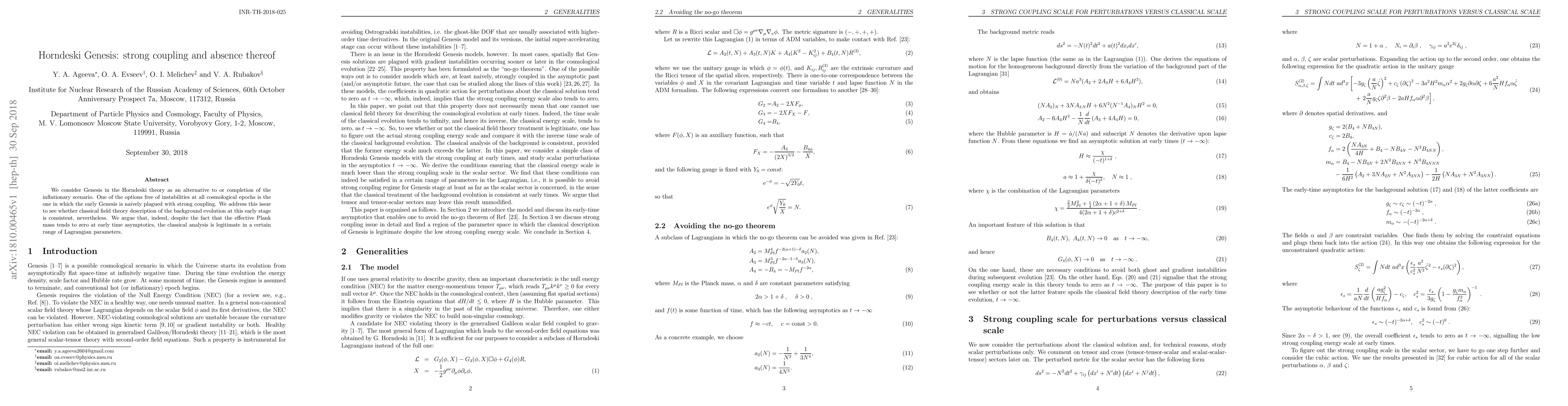 This paper explores Genesis in Horndeski theory as an inflationary alternative, addressing strong coupling issues. It concludes that despite the effective Planck mass tending to zero, classical field theory remains valid within specific Lagrangian parameter ranges.