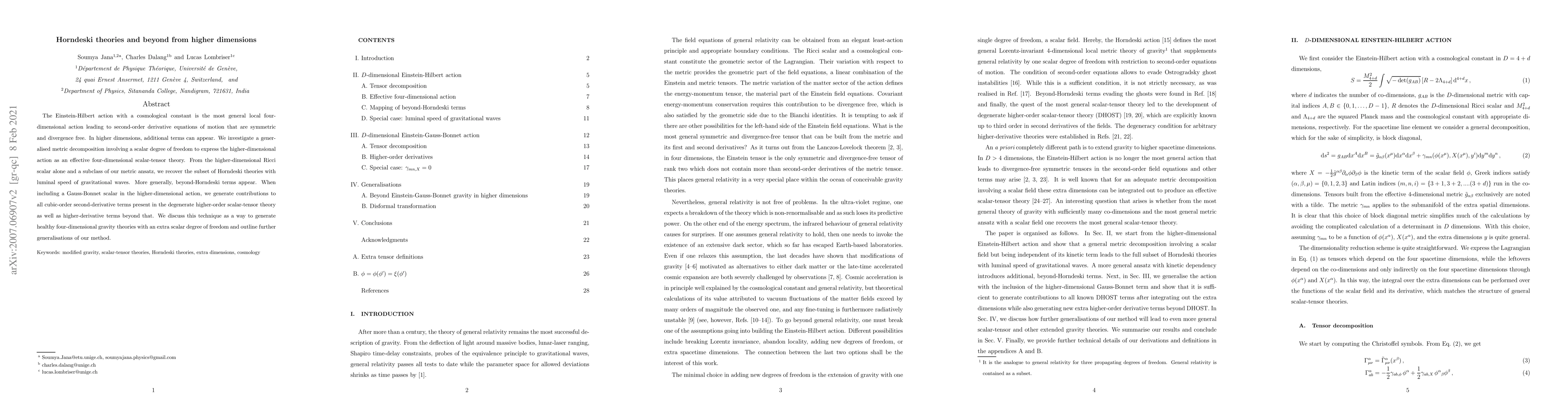 This paper explores higher-dimensional actions that reduce to effective four-dimensional scalar-tensor theories, including Horndeski and beyond-Horndeski theories, by incorporating a Gauss-Bonnet scalar and a generalised metric decomposition. The authors propose a method to generate healthy gravity theories with an extra scalar degree of freedom.