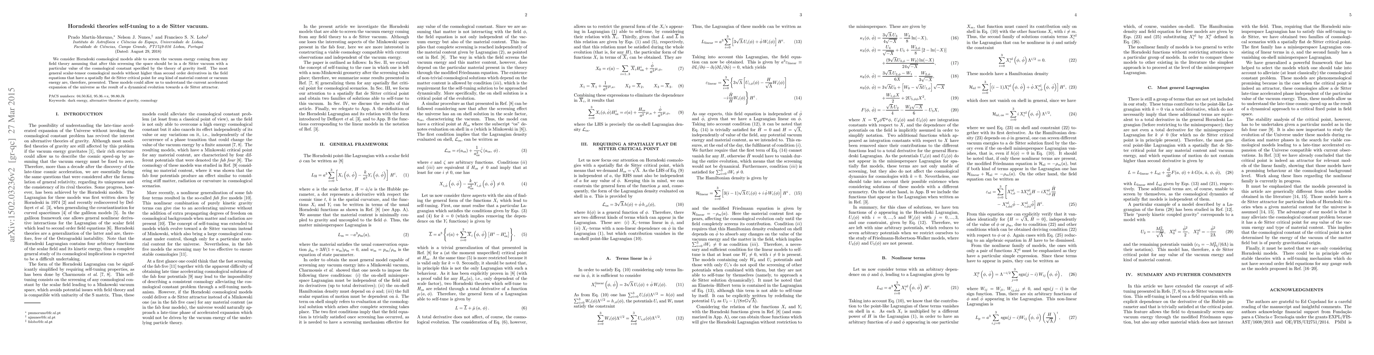 This paper explores Horndeski theories that can dynamically screen vacuum energy, leading to a de Sitter vacuum state with a cosmological constant determined by the theory itself. It presents the most general scalar-tensor models without higher-order derivatives, which could explain the universe's accelerated expansion as a result of evolving towards a de Sitter attractor.