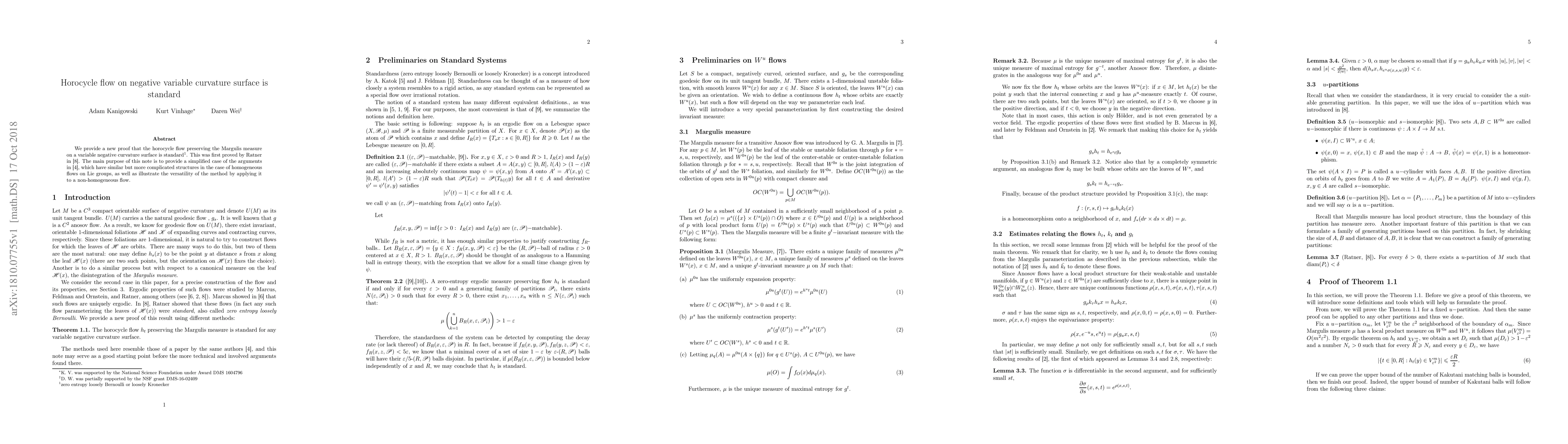A new proof simplifies a previous result showing that horocycle flow preserving Margulis measure on negative curvature surfaces is standard, with implications for unipotent flows on homogeneous spaces.