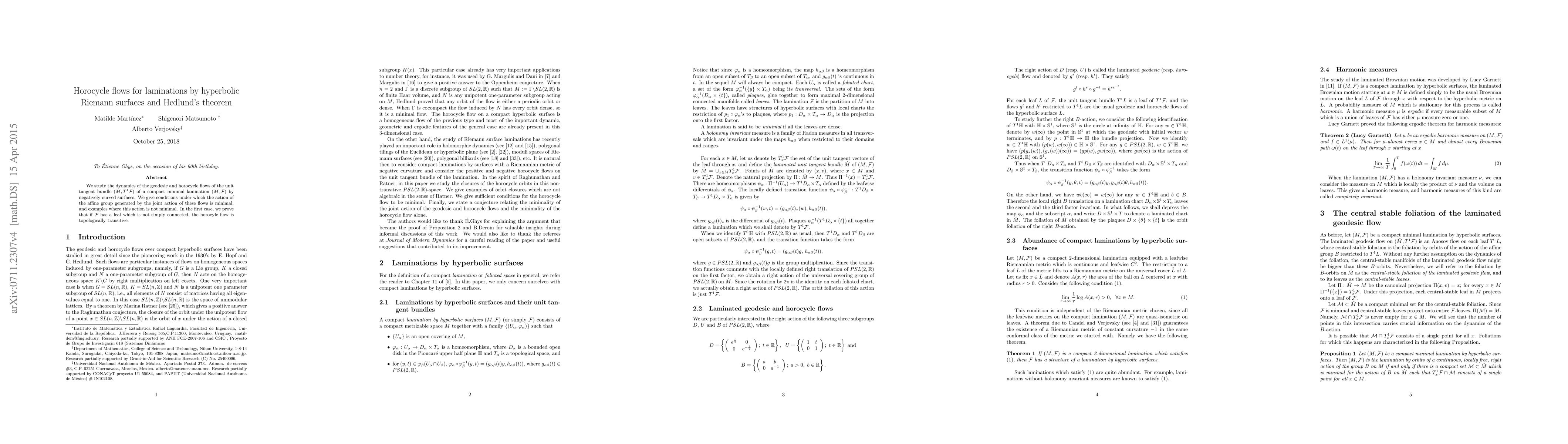 This paper explores the dynamics of geodesic and horocycle flows in the unit tangent bundle of a compact minimal lamination by negatively curved surfaces, proving conditions for minimality of the affine group action and demonstrating topological transitivity of the horocycle flow when the lamination leaf is not simply connected.