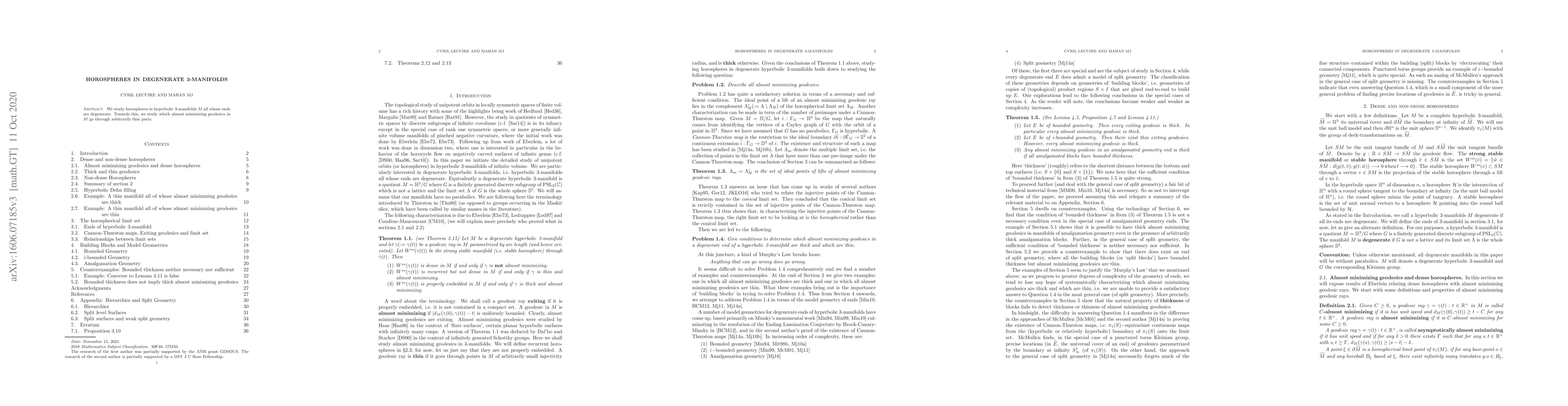 This research explores horospheres in hyperbolic 3-manifolds with degenerate ends, investigating which geodesics traverse extremely narrow regions. It delves into almost minimizing geodesics passing through arbitrarily thin sections, offering insights into the geometric structure of such manifolds.