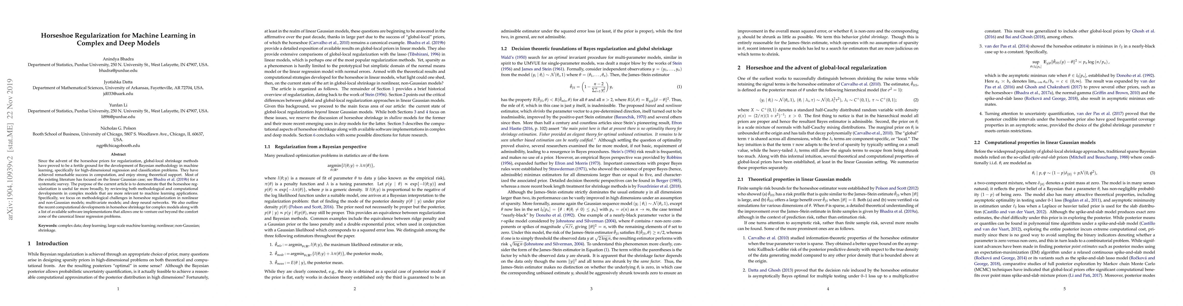 This paper explores the application of horseshoe regularization beyond linear Gaussian models, focusing on its utility in complex and deep machine learning models, including nonlinear, non-Gaussian, and multivariate frameworks. It also highlights recent computational advancements and available software for these applications.