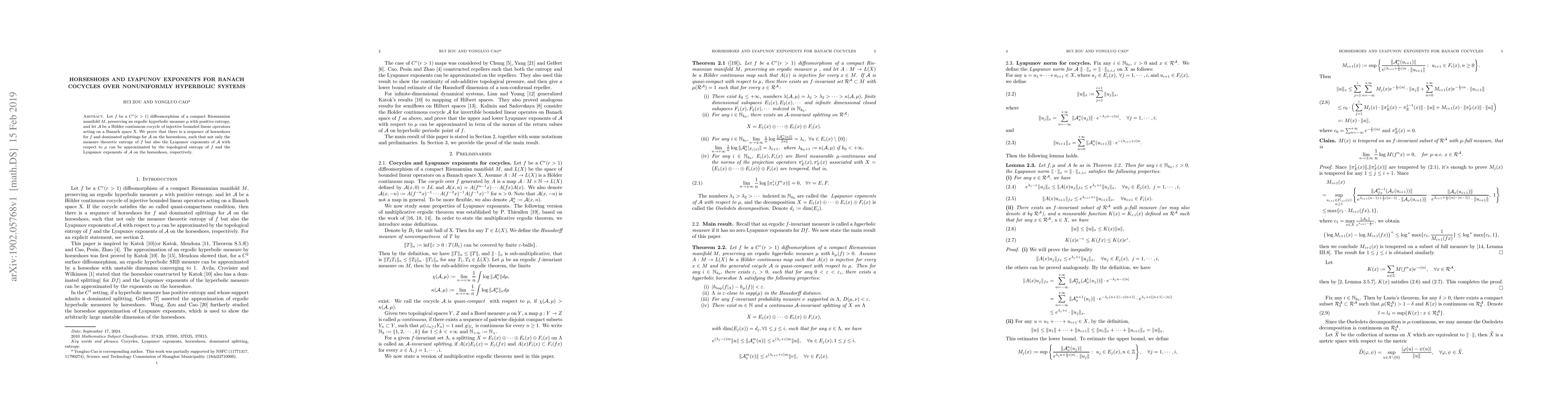 This paper proves the existence of a sequence of horseshoes for a $C^r$ diffeomorphism $f$ on a compact manifold, showing that both the measure-theoretic entropy of $f$ and the Lyapunov exponents of a Banach cocycle $\mathcal{A}$ can be approximated by their topological entropy and Lyapunov exponents on these horseshoes.