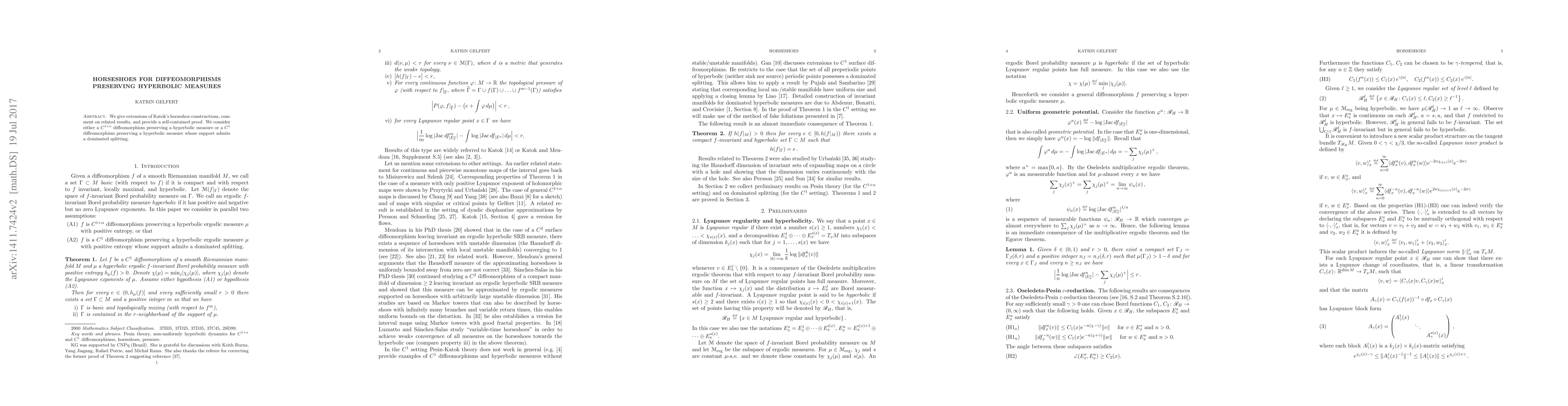 We give extensions of Katok's horseshoe constructions, comment on related results, and provide a self-contained proof. We consider either a $C^{1+\alpha}$ diffeomorphism preserving a hyperbolic measure or a $C^1$ diffeomorphism preserving a hyperbolic measure whose support admits a dominated splitting.