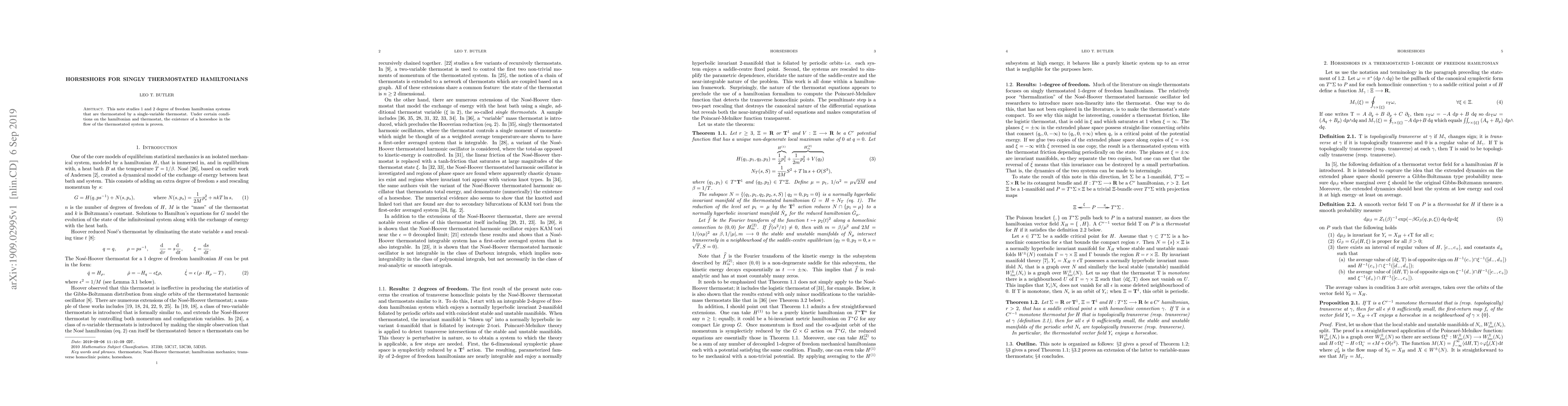 This note studies 1 and 2 degree of freedom hamiltonian systems that are thermostated by a single-variable thermostat. Under certain conditions on the hamiltonian and thermostat, the existence of a horseshoe in the flow of the thermostated system is proven.
