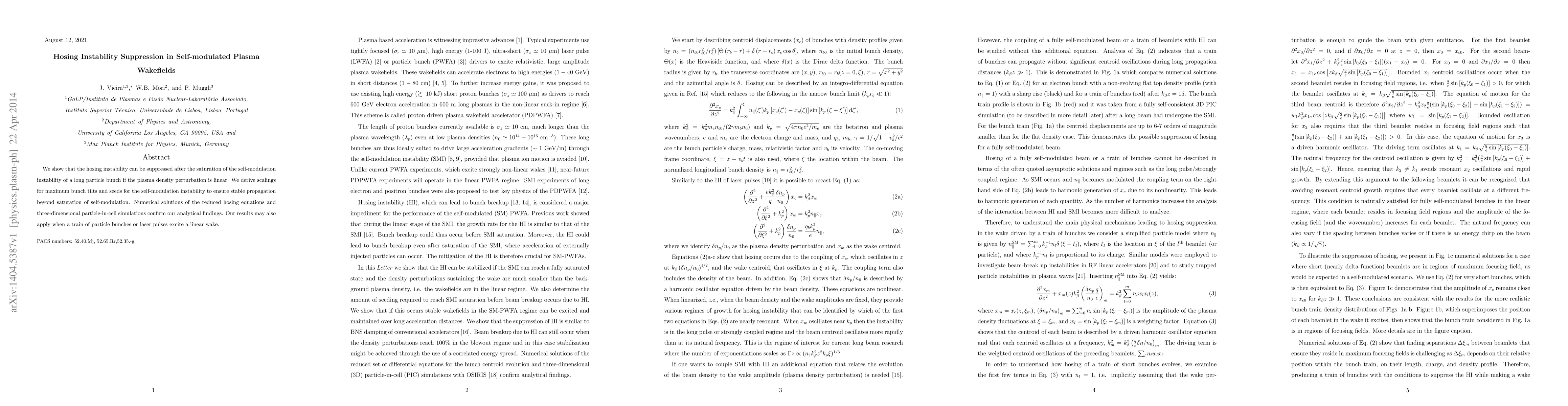 This paper demonstrates that hosing instability in self-modulated plasma wakefields can be suppressed through linear plasma density perturbations, providing analytical scalings for stable propagation. Numerical simulations corroborate these findings, suggesting applicability to trains of particle bunches or laser pulses.