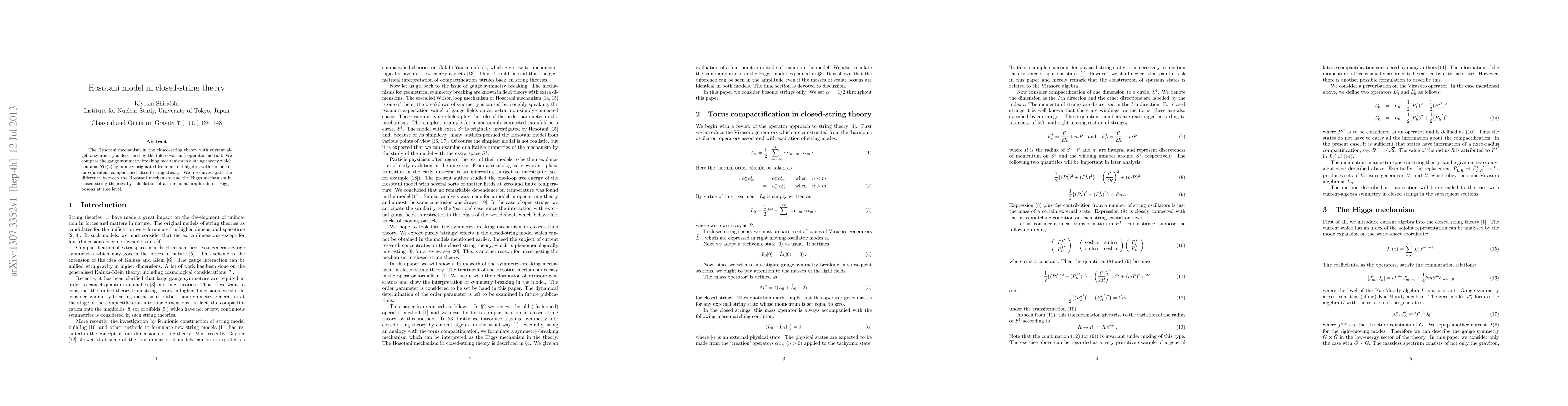 This paper explores the Hosotani mechanism in closed-string theory using the operator method, comparing gauge symmetry breaking in string theory with SU(2) symmetry from current algebra to that in compactified closed-string theory, and contrasts it with the Higgs mechanism via a four-point amplitude calculation.