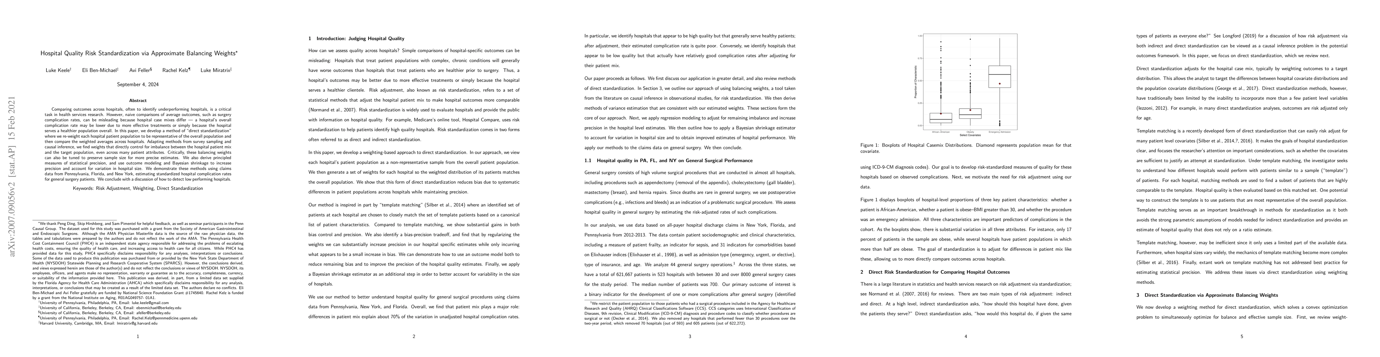 Researchers developed a method to compare hospital outcomes across different patient populations, accounting for variations in case mixes, to identify underperforming hospitals accurately. Their approach uses balancing weights to standardize hospital data and improve precision estimates.