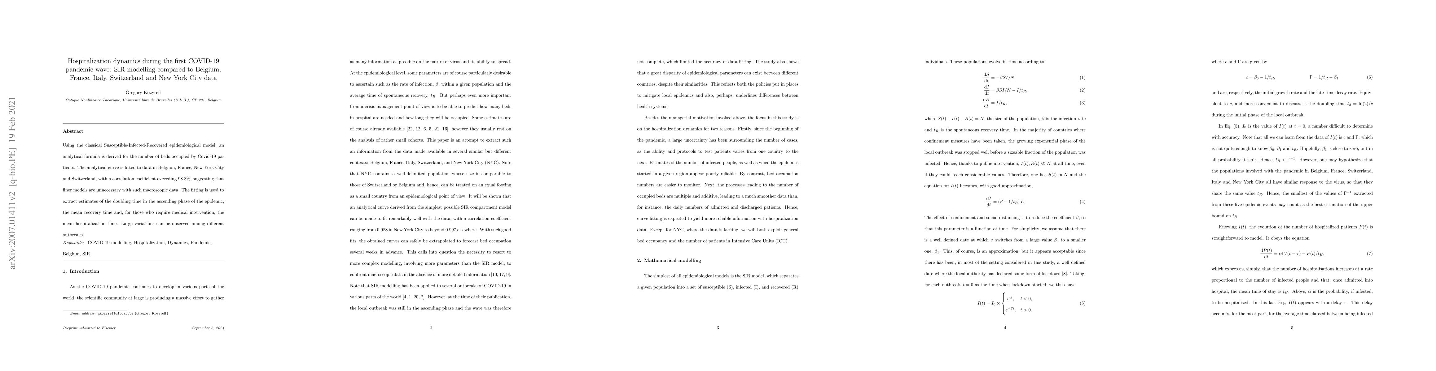 Using the classical Susceptible-Infected-Recovered epidemiological model, an analytical formula is derived for the number of beds occupied by Covid-19 patients. The analytical curve is fitted to data in Belgium, France, New York City and Switzerland, with a correlation coefficient exceeding 98.8%, suggesting that finer models are unnecessary with such macroscopic data. The fitting is used to extract estimates of the doubling time in the ascending phase of the epidemic, the mean recovery time and, for those who require medical intervention, the mean hospitalization time. Large variations can be observed among different outbreaks.