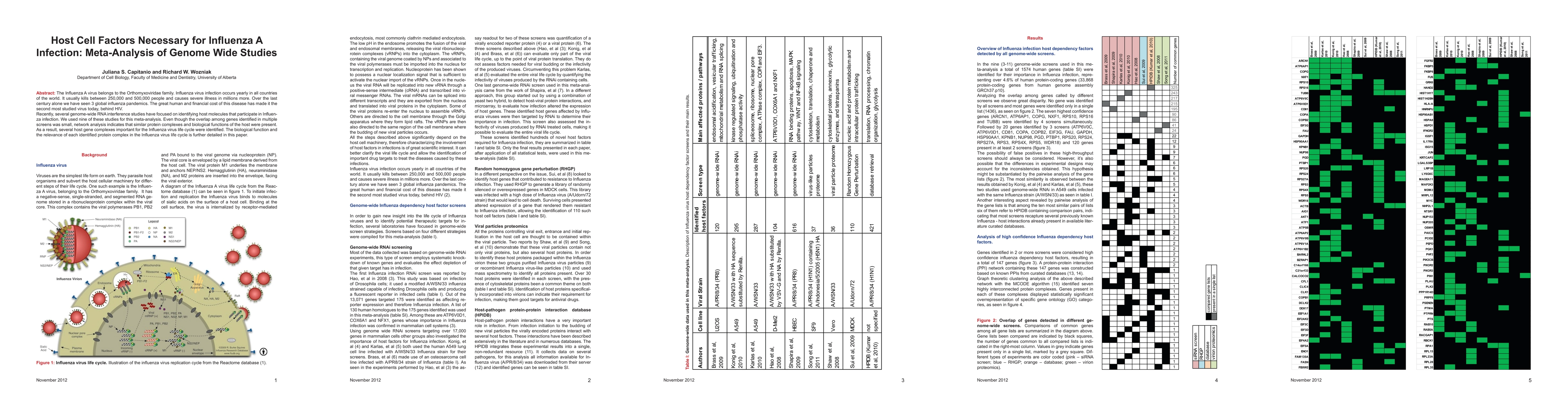 This meta-analysis of genome-wide studies identifies host gene complexes crucial for Influenza A infection, revealing overlapping biological functions despite limited gene overlap. The study highlights the importance of specific protein complexes in the Influenza virus life cycle.