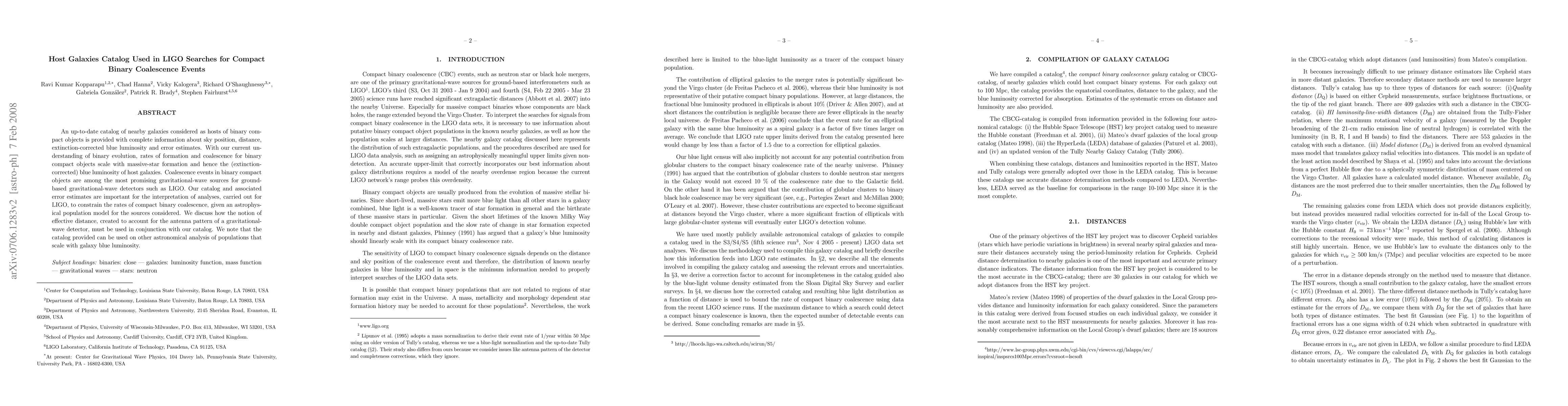This paper presents a comprehensive catalog of nearby galaxies that could host binary compact objects, detailing their sky positions, distances, extinction-corrected blue luminosities, and error estimates. The catalog is crucial for interpreting LIGO's gravitational-wave detections and understanding the rates of binary compact object coalescence.