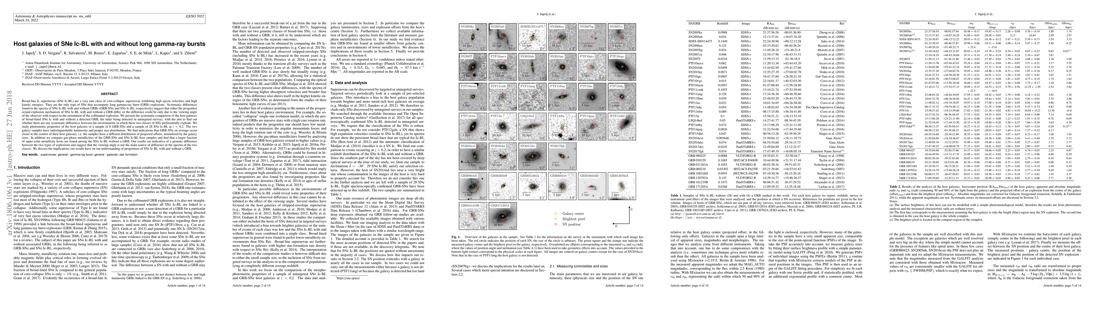 This paper investigates the host galaxies of broad-line Ic supernovae (SNe Ic-BL) with and without accompanying long gamma-ray bursts (GRBs), finding no significant differences in luminosity or size but indicating that GRB-SNe tend to occur closer to their host galaxies' centers. The study suggests that viewing angle differences are not the primary cause of spectral differences between the two classes.