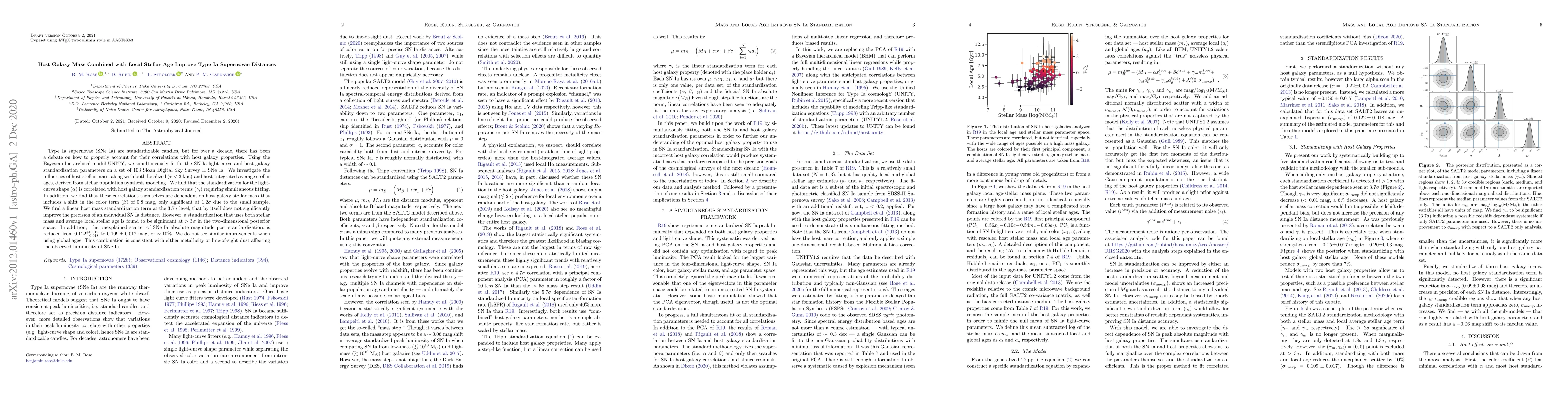 The application of the UNITY model to simultaneously fit SN Ia light curve parameters and host galaxy standardization terms, revealing the importance of host galaxy mass and local stellar age in improving SNe Ia distance standardization.