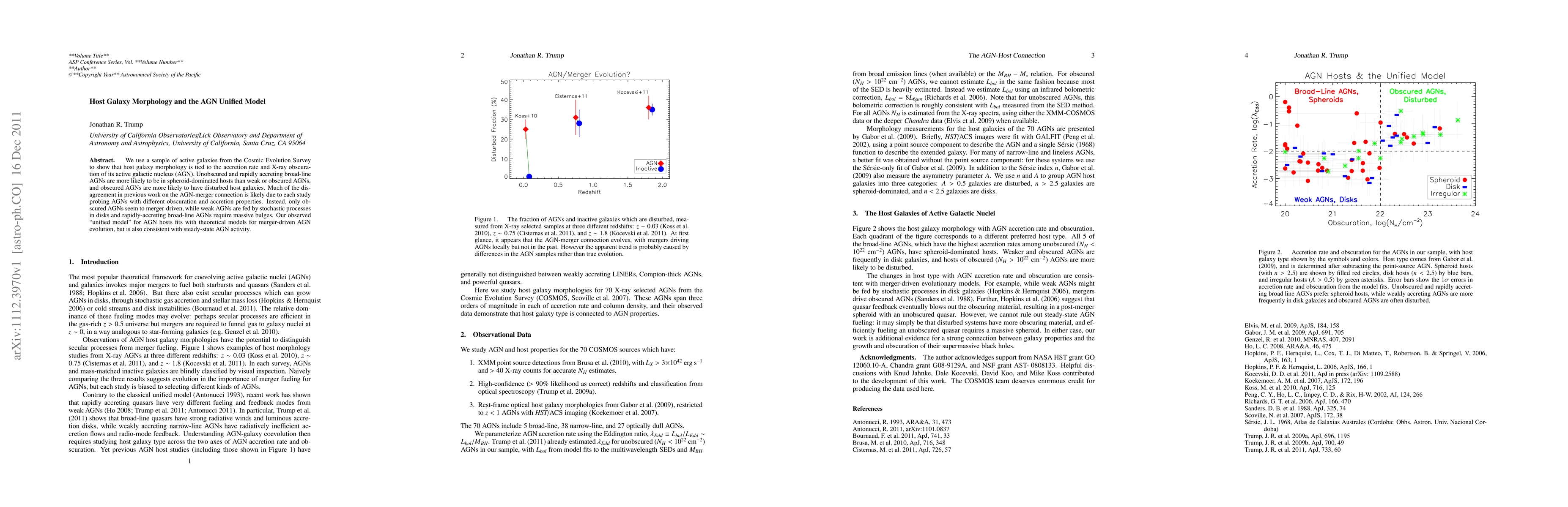 We use a sample of active galaxies from the Cosmic Evolution Survey to show that host galaxy morphology is tied to the accretion rate and X-ray obscuration of its active galactic nucleus (AGN). Unobscured and rapidly accreting broad-line AGNs are more likely to be in spheroid-dominated hosts than weak or obscured AGNs, and obscured AGNs are more likely to have disturbed host galaxies. Much of the disagreement in previous work on the AGN-merger connection is likely due to each study probing AGNs with different obscuration and accretion properties. Only obscured AGNs seem to merger-driven, while weak AGNs are fed by stochastic processes in disks, and rapidly-accreting broad-line AGNs require massive bulges. Our observed "unified model" for AGN hosts fits with theoretical models for merger-driven AGN evolution, but is also consistent with steady-state AGN activity.