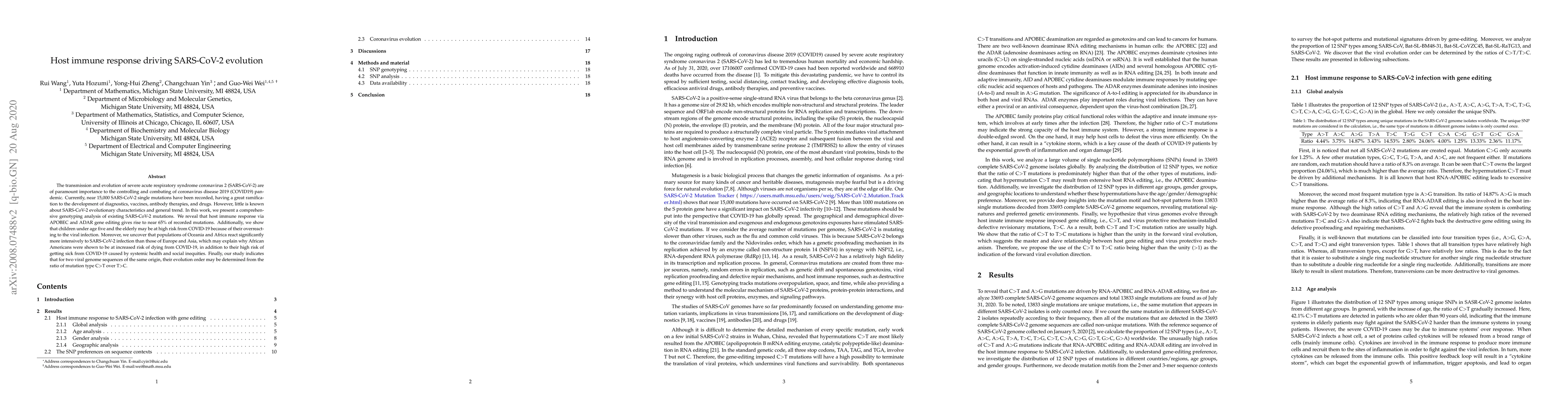 This study reveals that host immune response, specifically via APOBEC and ADAR gene editing, drives nearly 65% of SARS-CoV-2 mutations, highlighting the significant role of immune response in viral evolution. Additionally, it finds that children, the elderly, and populations in Oceania and Africa exhibit heightened immune responses to SARS-CoV-2, correlating with increased COVID-19 risk and mortality.
