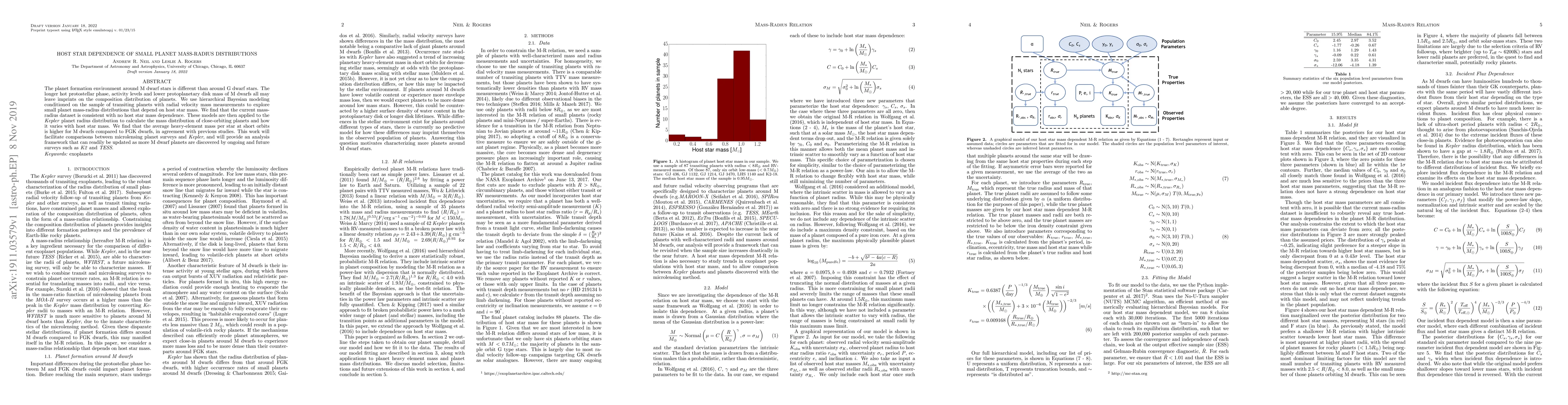 This paper investigates the mass-radius distribution of small planets around M dwarf stars compared to G dwarf stars, finding no significant host star mass dependence in current datasets. It concludes that M dwarfs host planets with a higher average heavy-element mass per star at short orbits, aiding future comparisons with microlensing surveys and providing a framework for updating as new data emerges.