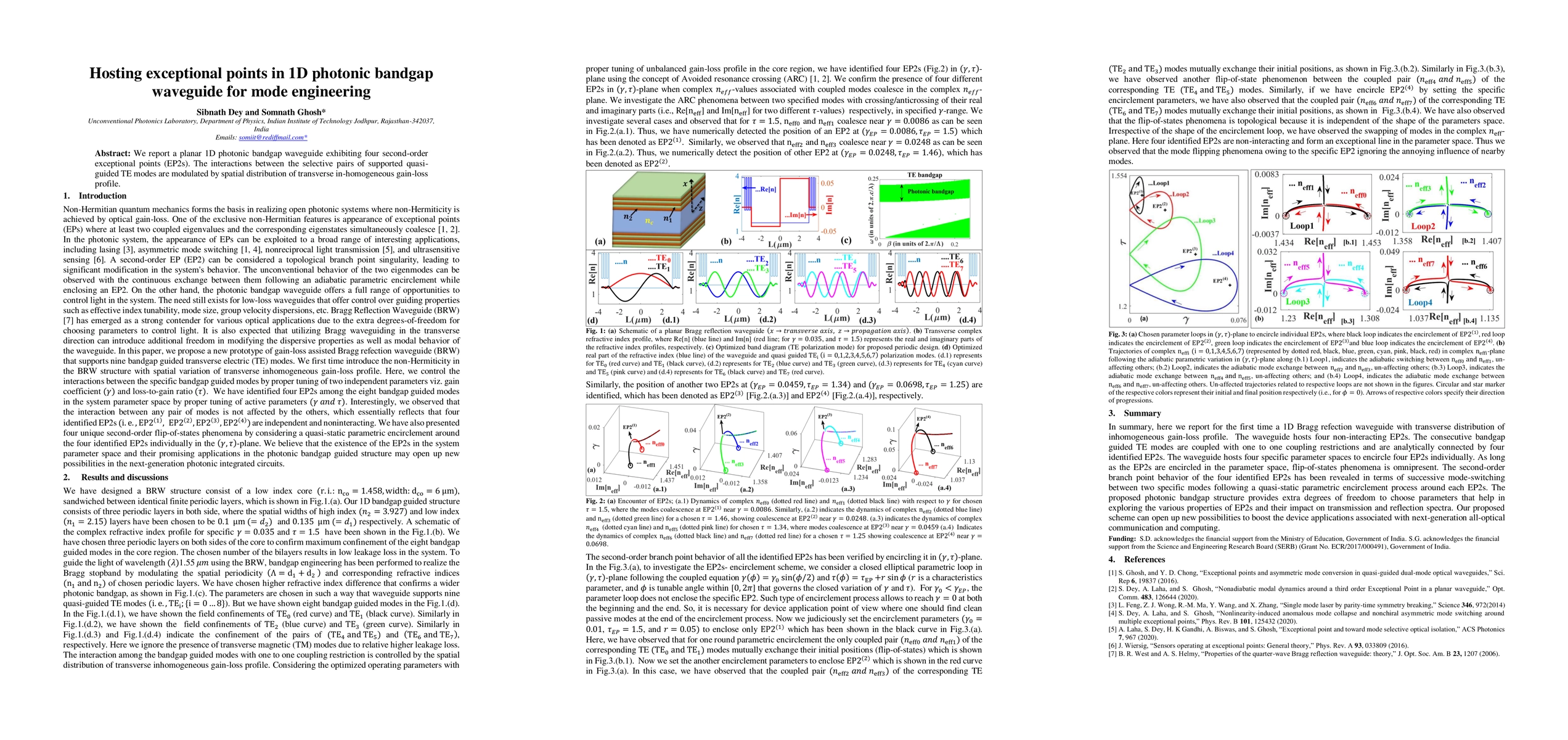 Summary: This research demonstrates a 1D photonic bandgap waveguide hosting four second-order exceptional points, enabling precise modulation of quasi-guided TE modes through a transverse gain-loss profile, facilitating advanced mode engineering.