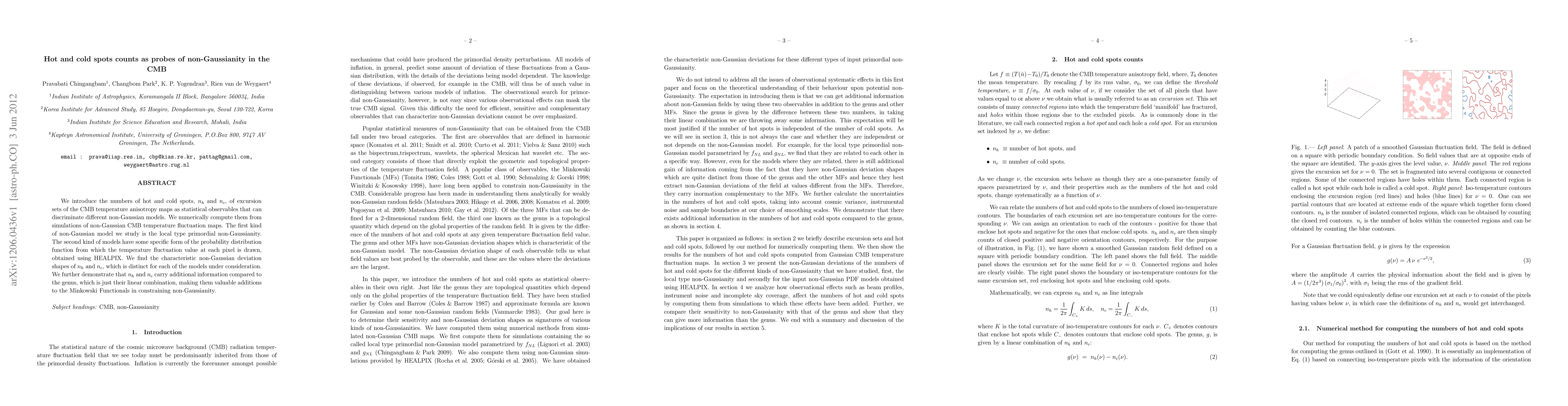 This research introduces 'hot and cold spots' counts ($n_h$ and $n_c$) as statistical tools to differentiate non-Gaussian models in CMB temperature anisotropy maps. Numerical computations from simulations of non-Gaussian CMB maps reveal distinct deviation shapes for each model, showing $n_h$ and $n_c$ carry extra information beyond the genus, thus enhancing constraints on non-Gaussianity.