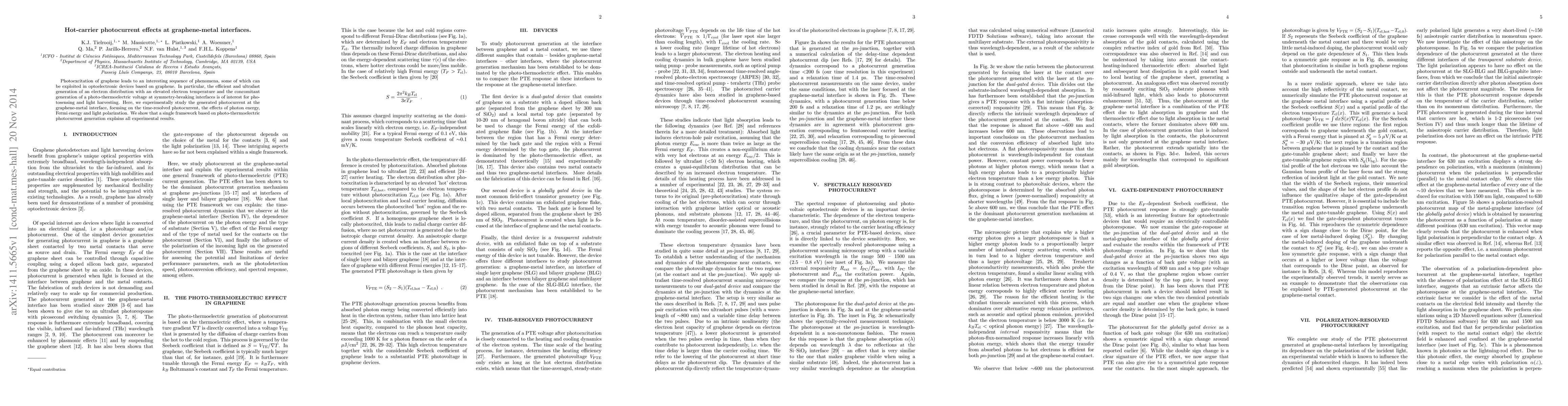 The paper presents a comprehensive experimental study on the photothermoelectric (PTE) photocurrent generation at graphene-metal interfaces, demonstrating a unified model that explains various experimental results.