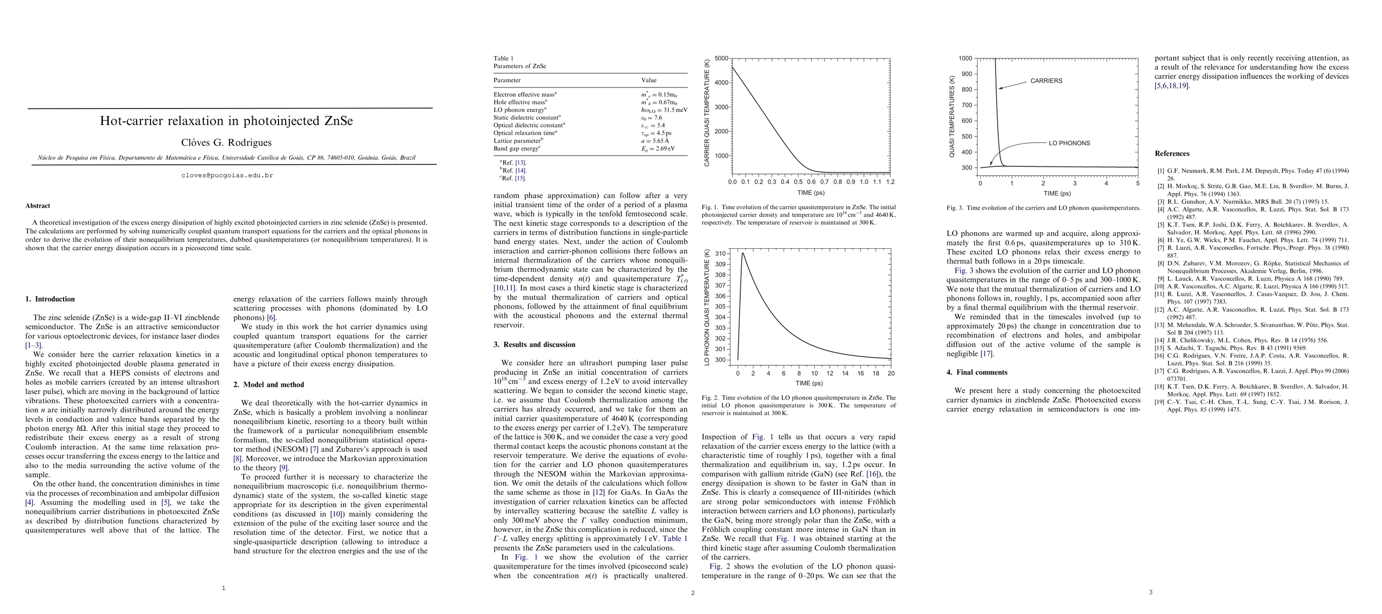 A theoretical investigation of the excess energy dissipation of highly excited photoinjected carriers in zinc selenide (ZnSe) is presented. The calculations are performed by solving numerically coupled quantum transport equations for the carriers and the optical phonons in order to derive the evolution of their nonequilibrium temperatures, dubbed quasitemperatures (or nonequilibrium temperatures). It is shown that the carrier energy dissipation occurs in a picosecond time scale.