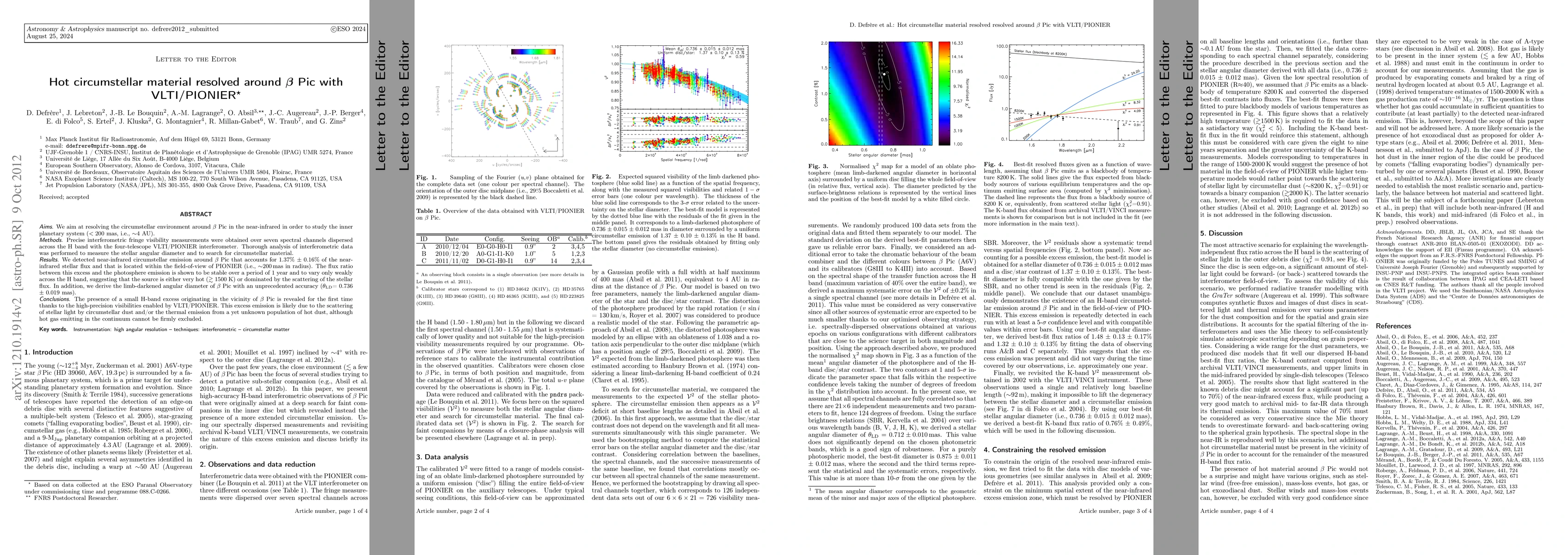 The VLTI/PIONIER interferometer detected near-infrared circumstellar emission around beta Pic, accounting for 1.37% of the stellar flux and likely due to hot dust or scattering, while also determining the star's angular diameter with high precision. The detected emission's stability suggests it is either very hot or dominated by scattered stellar light.