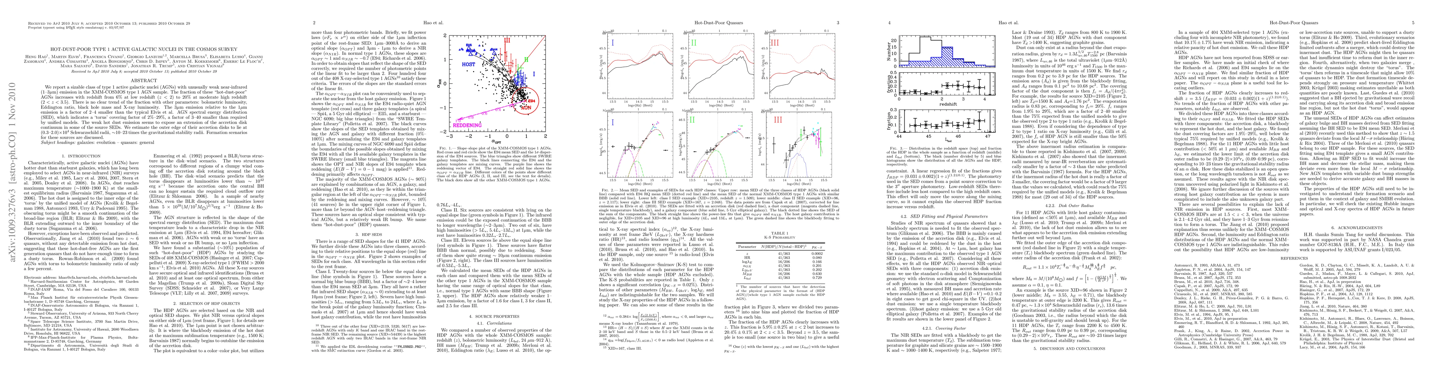 This study identifies a notable subset of type 1 active galactic nuclei (AGNs) with unusually weak near-infrared emission in the COSMOS survey, termed "hot-dust-poor" AGNs, whose prevalence increases with redshift. These AGNs exhibit a significantly reduced "torus" covering factor, suggesting a potential extension of the accretion disk continuum.