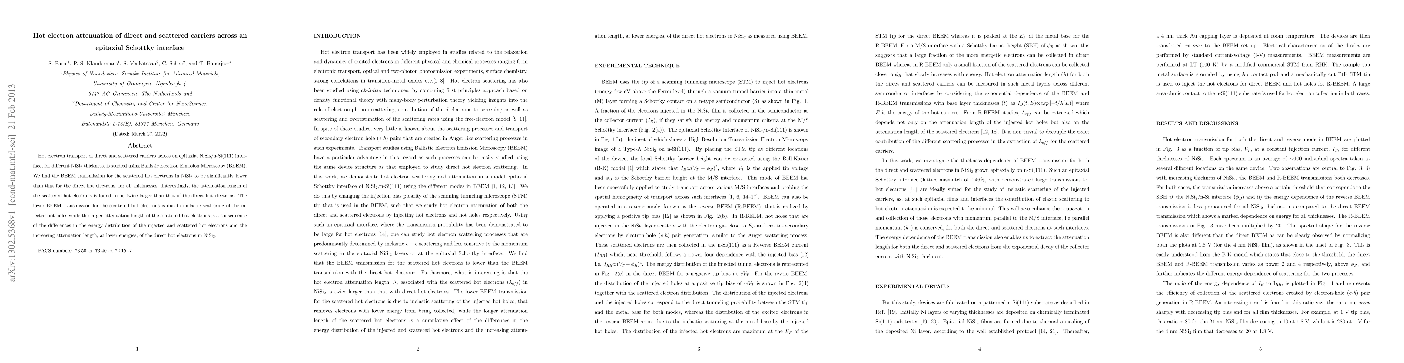 This study investigates hot electron transport across an epitaxial NiSi_2/n-Si(111) interface using Ballistic Electron Emission Microscopy (BEEM). The research finds that scattered hot electrons exhibit significantly lower BEEM transmission and a longer attenuation length compared to direct hot electrons, attributed to inelastic scattering and differences in energy distributions.