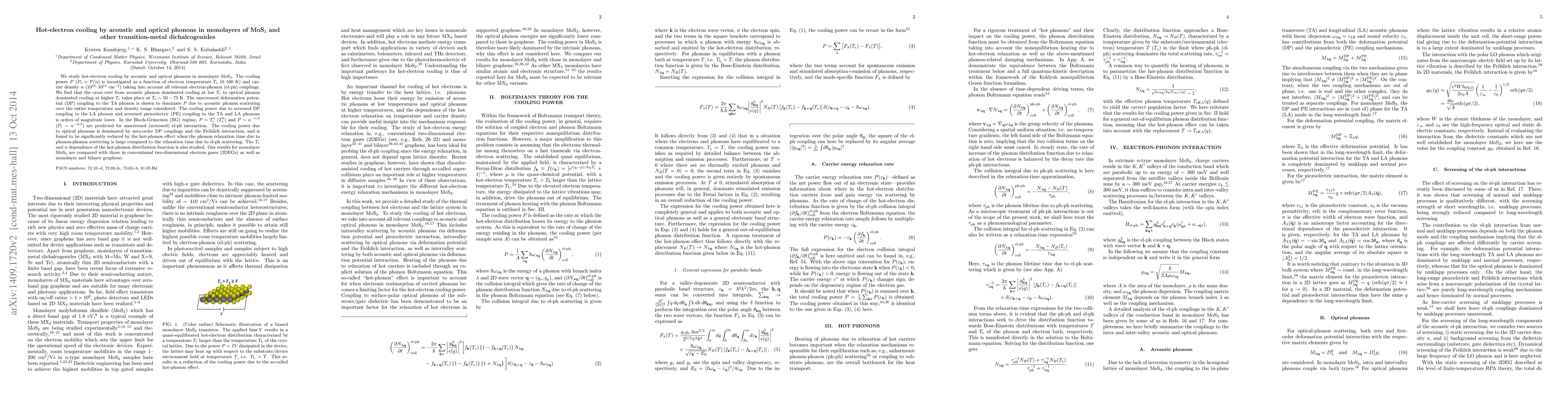 This research investigates hot-electron cooling in monolayer MoS$_2$ by acoustic and optical phonons, finding that acoustic phonons dominate at low electron temperatures while optical phonons take over at higher temperatures. The deformation potential coupling to TA phonons is identified as the primary cooling mechanism.