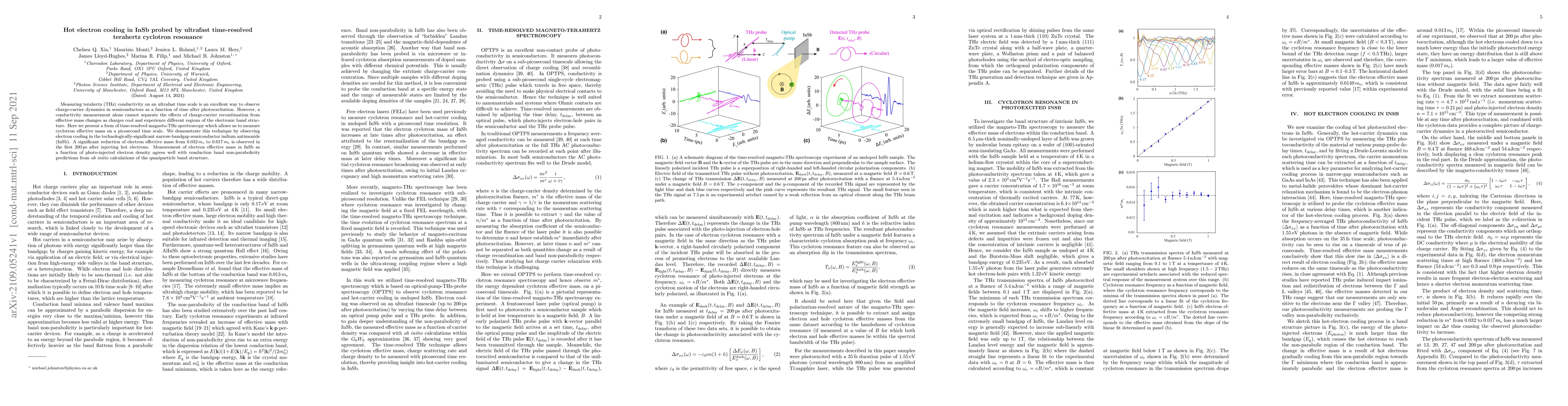 Measuring terahertz (THz) conductivity on an ultrafast time scale is an excellent way to observe charge-carrier dynamics in semiconductors as a function of time after photoexcitation. However, a conductivity measurement alone cannot separate the effects of charge-carrier recombination from effective mass changes as charges cool and experience different regions of the electronic band structure. Here we present a form of time-resolved magneto-THz spectroscopy which allows us to measure cyclotron effective mass on a picosecond time scale. We demonstrate this technique by observing electron cooling in the technologically-significant narrow-bandgap semiconductor indium antimonide (InSb). A significant reduction of electron effective mass from 0.032$m_\mathrm{e}$ to 0.017$m_\mathrm{e}$ is observed in the first 200ps after injecting hot electrons. Measurement of electron effective mass in InSb as a function of photo-injected electron density agrees well with conduction band non-parabolicity predictions from ab initio calculations of the quasiparticle band structure.