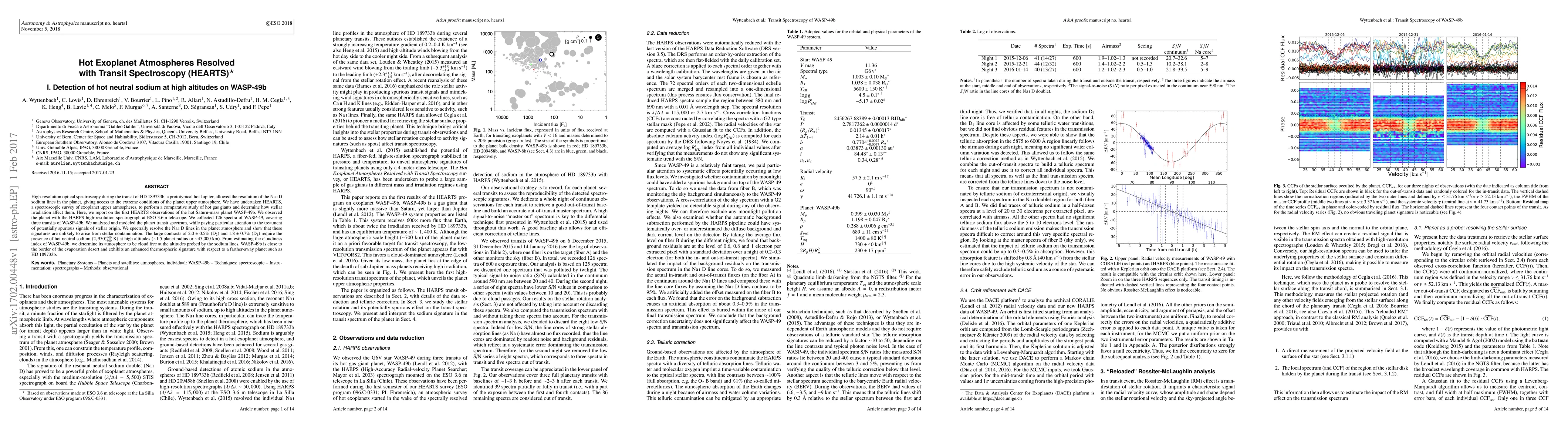 High-resolution optical spectroscopy during the transit of HD 189733b, a prototypical hot Jupiter, allowed the resolution of the Na I D sodium lines in the planet, giving access to the extreme conditions of the planet upper atmosphere. We have undertaken HEARTS, a spectroscopic survey of exoplanet upper atmospheres, to perform a comparative study of hot gas giants and determine how stellar irradiation affect them. Here, we report on the first HEARTS observations of the hot Saturn-mass planet WASP-49b. We observed the planet with the HARPS high-resolution spectrograph at ESO 3.6m telescope. We collected 126 spectra of WASP-49, covering three transits of WASP-49b. We analyzed and modeled the planet transit spectrum, while paying particular attention to the treatment of potentially spurious signals of stellar origin. We spectrally resolve the Na I D lines in the planet atmosphere and show that these signatures are unlikely to arise from stellar contamination. The large contrasts of $2.0\pm0.5\%$ (D$_2$) and $1.8\pm0.7\%$ (D$_1$) require the presence of hot neutral sodium ($2,950^{+400}_{-500}$ K) at high altitudes ($\sim$1.5 planet radius or $\sim$45,000 km). From estimating the cloudiness index of WASP-49b, we determine its atmosphere to be cloud free at the altitudes probed by the sodium lines. WASP-49b is close to the border of the evaporation desert and exhibits an enhanced thermospheric signature with respect to a farther-away planet such as HD 189733b.
