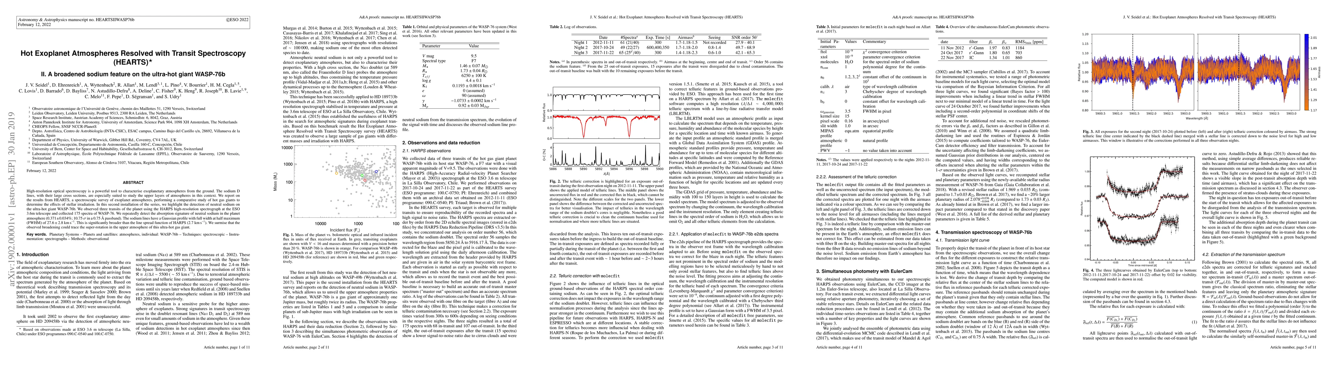High-resolution optical spectroscopy is a powerful tool to characterise exoplanetary atmospheres from the ground. The sodium D lines, with their large cross sections, are especially suited to study the upper layers of atmospheres in this context. We report on the results from HEARTS, a spectroscopic survey of exoplanet atmospheres, performing a comparative study of hot gas giants to determine the effects of stellar irradiation. In this second installation of the series, we highlight the detection of neutral sodium on the ultra-hot giant WASP-76b. We observed three transits of the planet using the HARPS high-resolution spectrograph at the ESO 3.6m telescope and collected 175 spectra of WASP-76. We repeatedly detect the absorption signature of neutral sodium in the planet atmosphere ($0.371\pm0.034\%$; $10.75 \sigma$ in a $0.75$ \r{A} passband). The sodium lines have a Gaussian profile with full width at half maximum (FWHM) of $27.6\pm2.8$ km s$^{-1}$. This is significantly broader than the line spread function of HARPS ($2.7$ km s$^{-1}$). We surmise that the observed broadening could trace the super-rotation in the upper atmosphere of this ultra-hot gas giant.