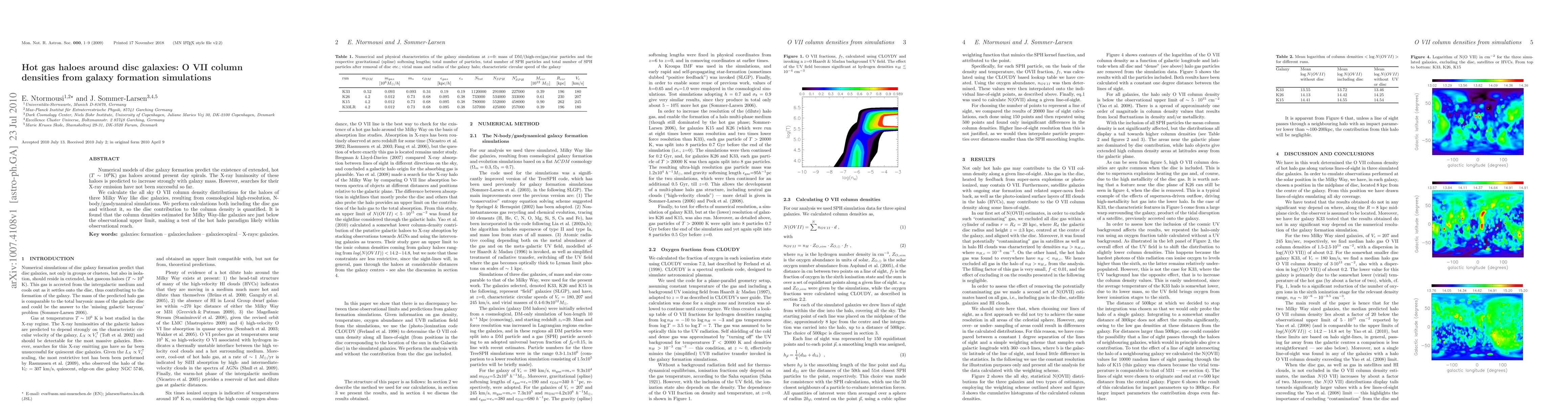 Numerical models of disc galaxy formation predict the existence of extended, hot ( T~10^6 K) gas haloes around present day spirals. The X-ray luminosity of these haloes is predicted to increase strongly with galaxy mass. However, searches for their X-ray emission have not been successful so far. We calculate the all sky O VII column density distributions for the haloes of three Milky Way like disc galaxies, resulting from cosmological high-resolution, N-body/gasdynamical simulations. We perform calculations both including the disc gas and without it, so the disc contribution to the column density is quantified. It is found that the column densities estimated for Milky Way-like galaxies are just below the observational upper limit, making a test of the hot halo paradigm likely within observational reach.