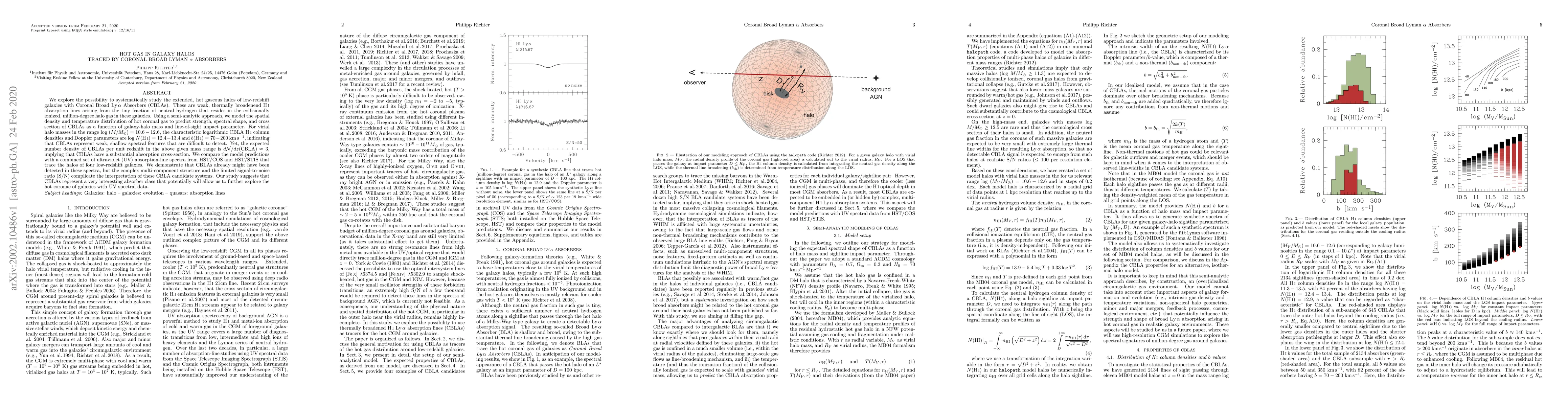 We explore the possibility to systematically study the extended, hot gaseous halos of low-redshift galaxies with Coronal Broad Ly alpha Absorbers (CBLAs). These are weak, thermally broadenend HI absorption lines arising from the tiny fraction of neutral hydrogen that resides in the collisionally ionized, million-degree halo gas in these galaxies. Using a semi-analytic approach, we model the spatial density and temperature distribution of hot coronal gas to predict strength, spectral shape, and cross section of CBLAs as a function of galaxy-halo mass and line-of-sight impact parameter. For virial halo masses in the range log (M/M_sun)=10.6-12.6, the characteristic logarithmic CBLA HI column densities and Doppler parameters are log N(HI)=12.4-13.4 and b(HI)=70-200 km/s, indicating that CBLAs represent weak, shallow spectral features that are difficult to detect. Yet, the expected number density of CBLAs per unit redshift in the above given mass range is dN/dz(CBLA)~3, implying that CBLAs have a substantial absorption cross-section. We compare the model predictions with a combined set of ultraviolet (UV) absorption-line spectra from HST/COS and HST/STIS that trace the halos of four low-redshift galaxies. We demonstrate that CBLAs already might have been detected in these spectra, but the complex multi-component structure and the limited signal-to-noise ratio (S/N) complicate the interpretation of these CBLA candidate systems. Our study suggests that CBLAs represent a very interesting absorber class that potentially will allow us to further explore the hot coronae of galaxies with UV spectral data.