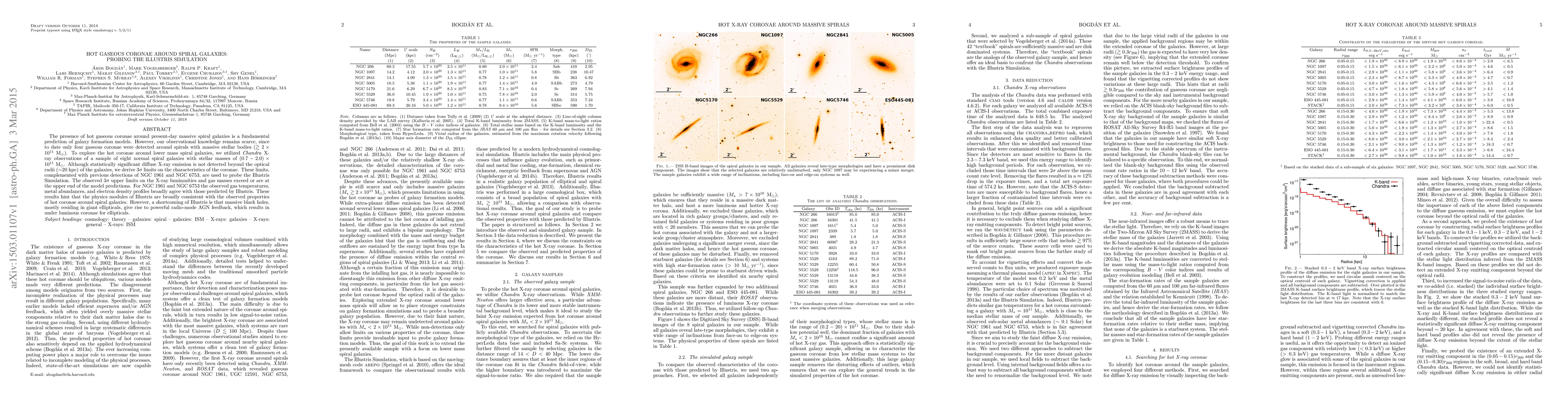 The presence of hot gaseous coronae around present-day massive spiral galaxies is a fundamental prediction of galaxy formation models. However, our observational knowledge remains scarce, since to date only four gaseous coronae were detected around spirals with massive stellar bodies ($\gtrsim2\times10^{11} \ \rm{M_{\odot}}$). To explore the hot coronae around lower mass spiral galaxies, we utilized Chandra X-ray observations of a sample of eight normal spiral galaxies with stellar masses of $(0.7-2.0)\times10^{11} \ \rm{M_{\odot}}$. Although statistically significant diffuse X-ray emission is not detected beyond the optical radii ($\sim20$ kpc) of the galaxies, we derive $3\sigma$ limits on the characteristics of the coronae. These limits, complemented with previous detections of NGC 1961 and NGC 6753, are used to probe the Illustris Simulation. The observed $3\sigma$ upper limits on the X-ray luminosities and gas masses exceed or are at the upper end of the model predictions. For NGC 1961 and NGC 6753 the observed gas temperatures, metal abundances, and electron density profiles broadly agree with those predicted by Illustris. These results hint that the physics modules of Illustris are broadly consistent with the observed properties of hot coronae around spiral galaxies. However, a shortcoming of Illustris is that massive black holes, mostly residing in giant ellipticals, give rise to powerful radio-mode AGN feedback, which results in under luminous coronae for ellipticals.