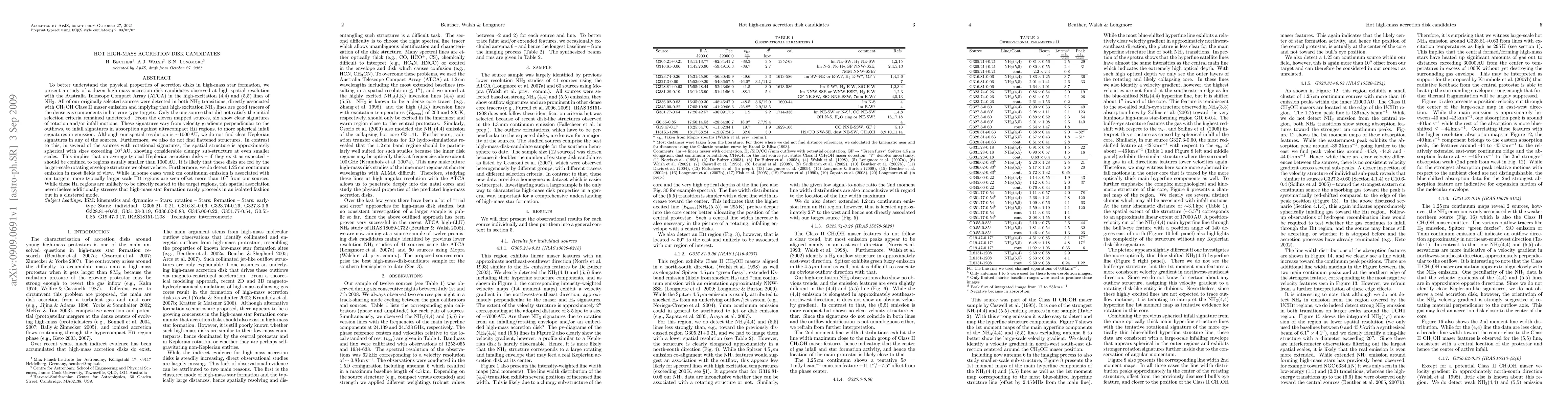 Researchers studied 12 high-mass accretion disk candidates using ATCA observations and found that most sources show rotation and infall motions, but no clear Keplerian signatures or flattened structures, suggesting disks may be confined to smaller scales than previously thought.