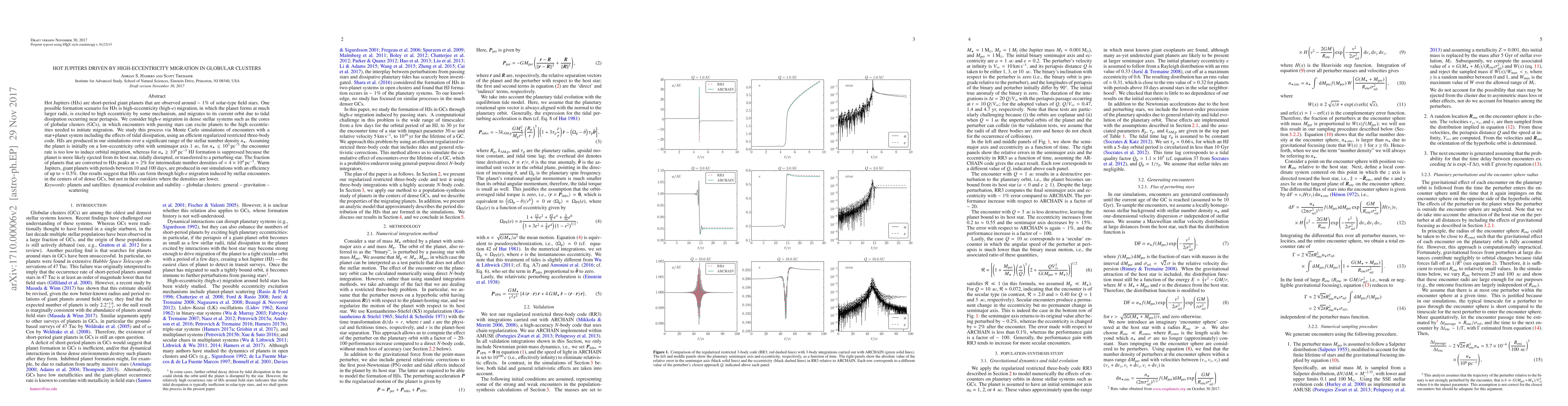 This paper explores the formation of Hot Jupiters via high-eccentricity migration in dense globular cluster cores, finding that such planets can form through stellar encounters exciting planets to high eccentricities, leading to tidal migration. The peak formation rate occurs at intermediate stellar number densities, with HJ formation suppressed at both lower and higher densities due to ejection or disruption.